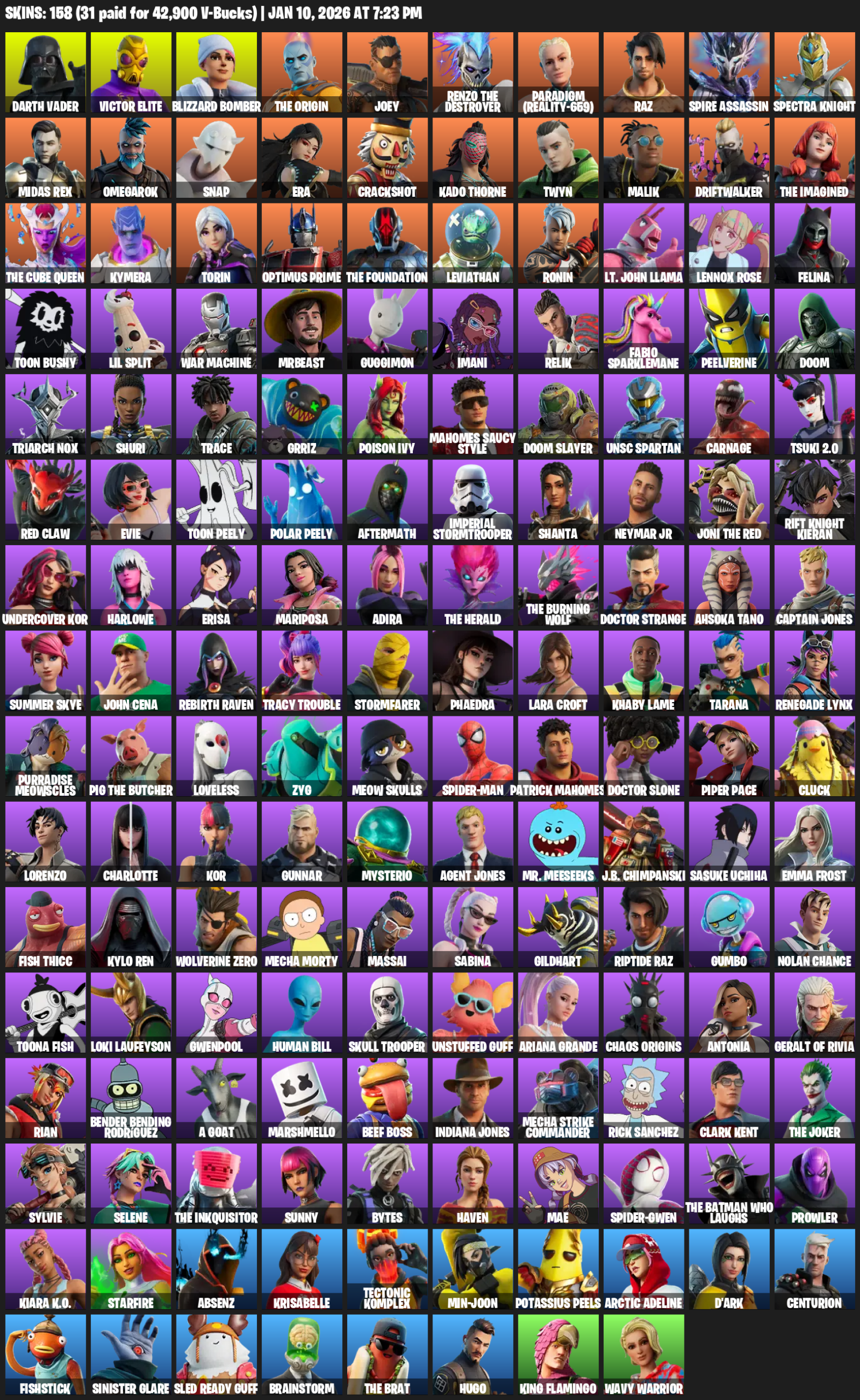 Lara Croft, Darth Vader, Victor Elite, Blizzard Bomber, The Origin, Joey, Paradigm (Reality-659), Raz, Spire Assassin, Spectra Knight, Midas Rex, Omegarok, Snap, Era, Crackshot, Kado Thorne, Twyn, Malik, Driftwalker