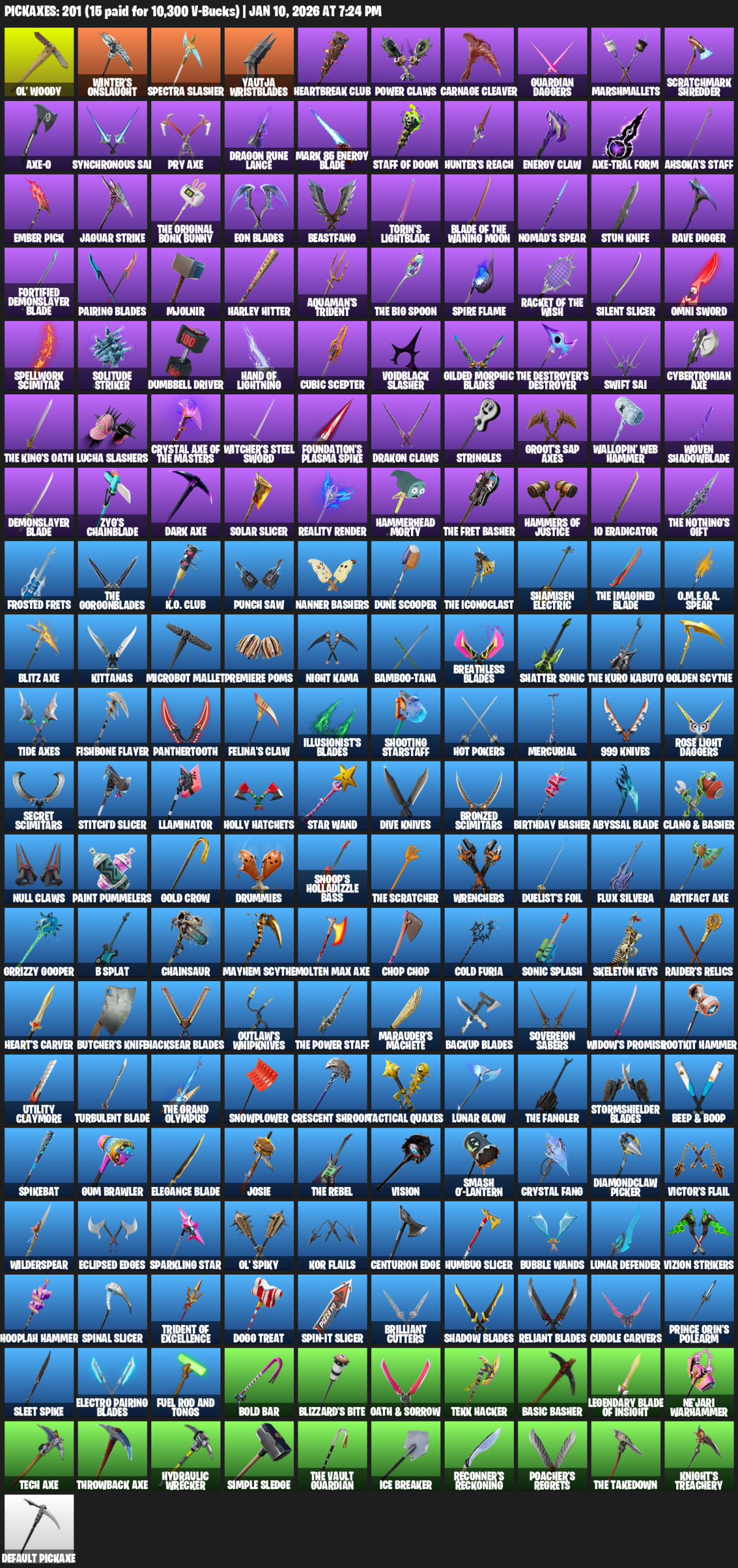 Cyclo Curl, Boomin’, Lil’ Rover, Hang Loose Celebration, !, I’m a Mystery, Conjure Weapon, Wakandan Salute, This is Fine, BeatzBunny, Electro Shuffle, Boogie Down, Azarath Metrion Zinthos!, Crowning Achievement, Igni Sign