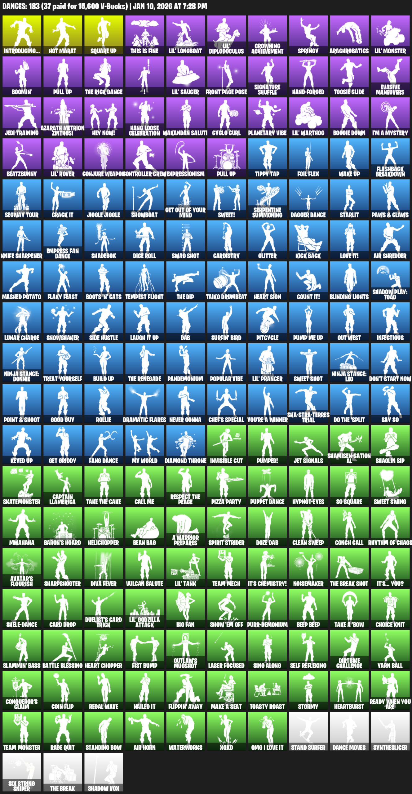 Introducing…, Hot Marat, Square Up, This is Fine, Lil’ Longboat, Crowning Achievement, Springy, Arachrobatics, Boomin’, !, Front Page Pose, Signature Shuffle, Hand-Forged, Toosie Slide, Evasive Maneuvers