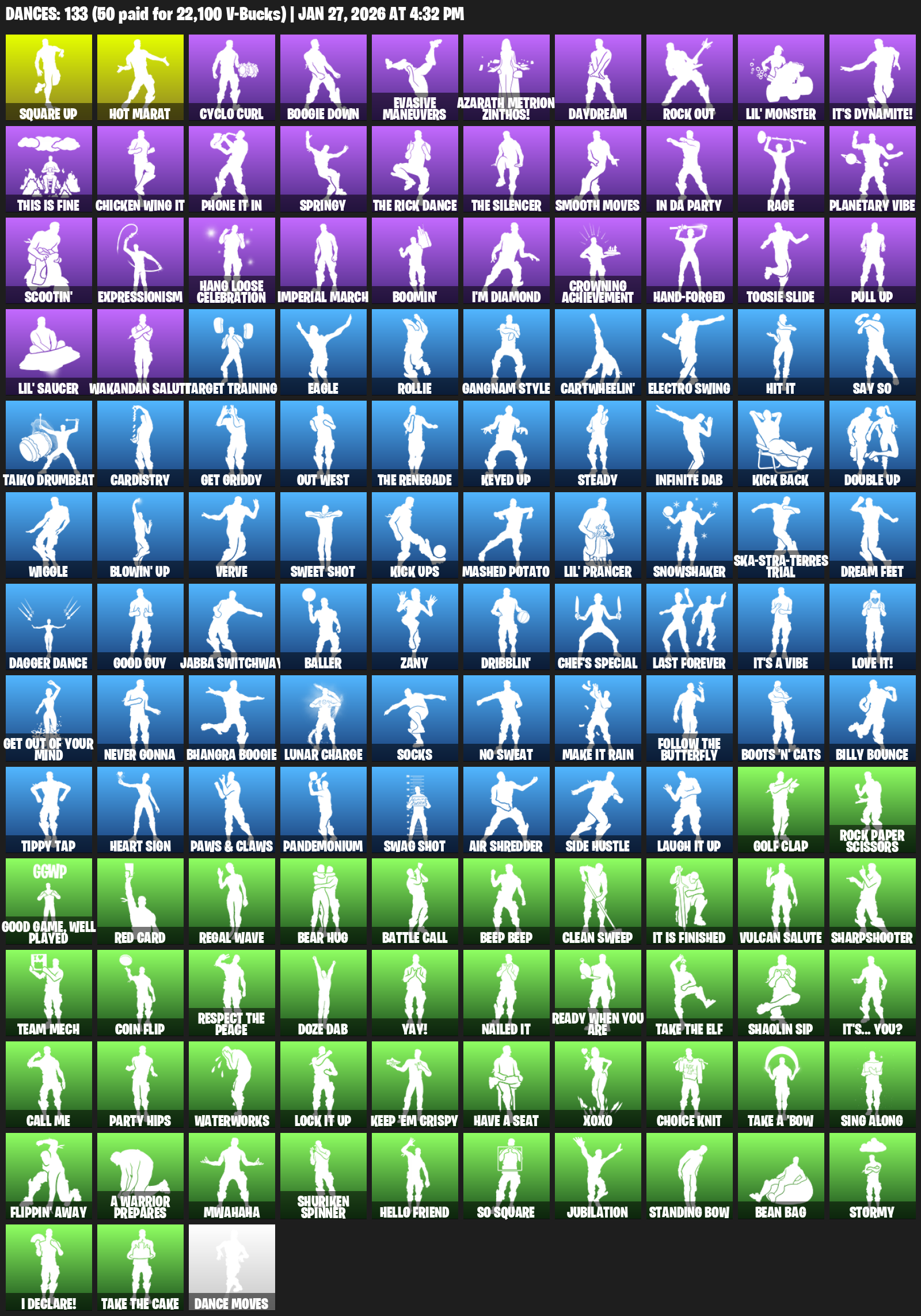 Hot Marat, Square Up, Cyclo Curl, Boogie Down, Evasive Maneuvers, Azarath Metrion Zinthos!, Daydream, Rock Out, Lil’ Monster, It’s Dynamite!, This is Fine, Chicken Wing It, Springy, Smooth Moves, In Da Party, Rage, Planetary Vibe