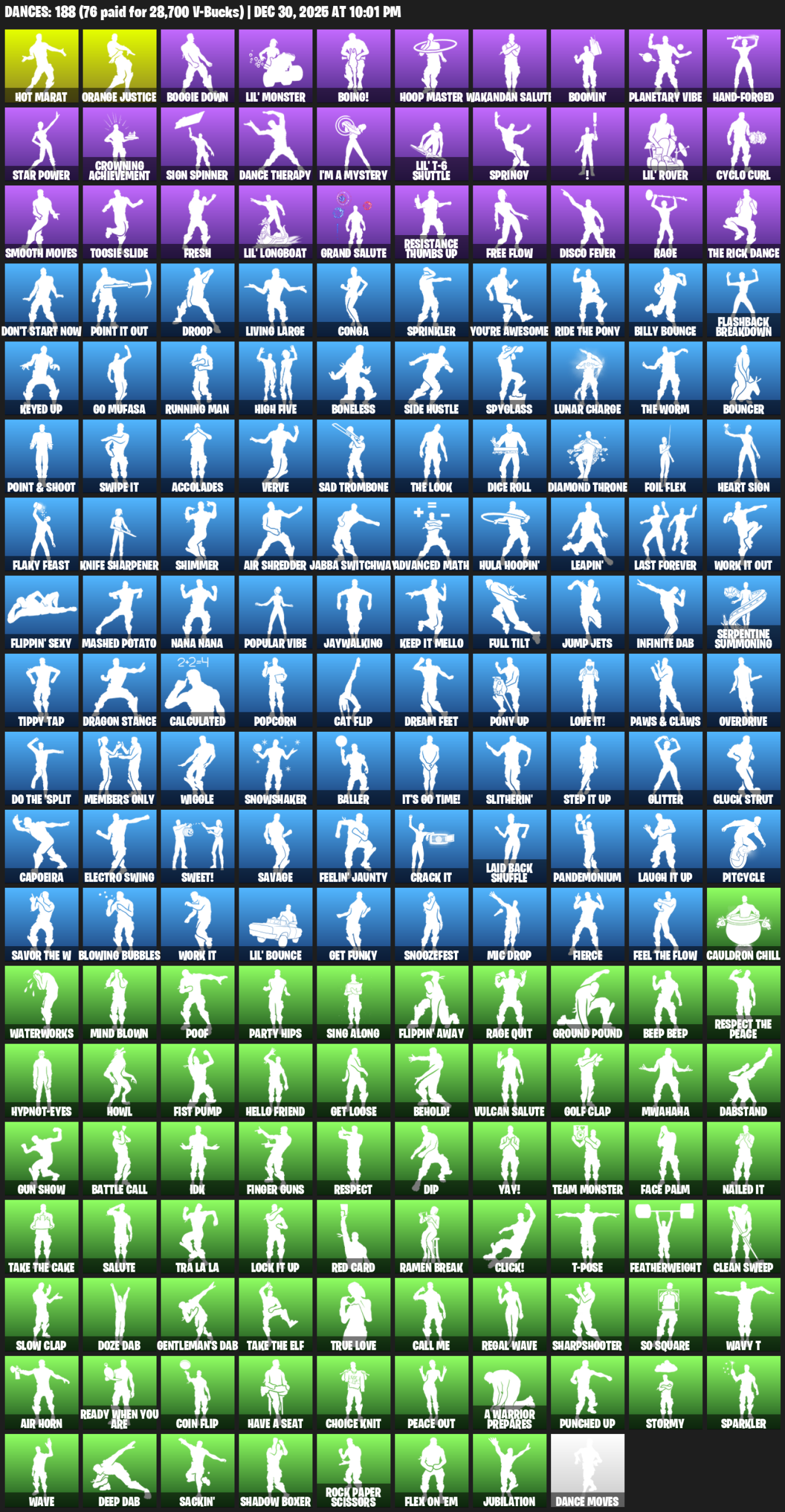 Hot Marat, Orange Justice, Boogie Down, Lil’ Monster, Boing!, Hoop Master, Wakandan Salute, Boomin’, Planetary Vibe, Hand-Forged, Star Power, Crowning Achievement, Sign Spinner, Dance Therapy, I’m a Mystery, Springy, !, Cyclo Curl