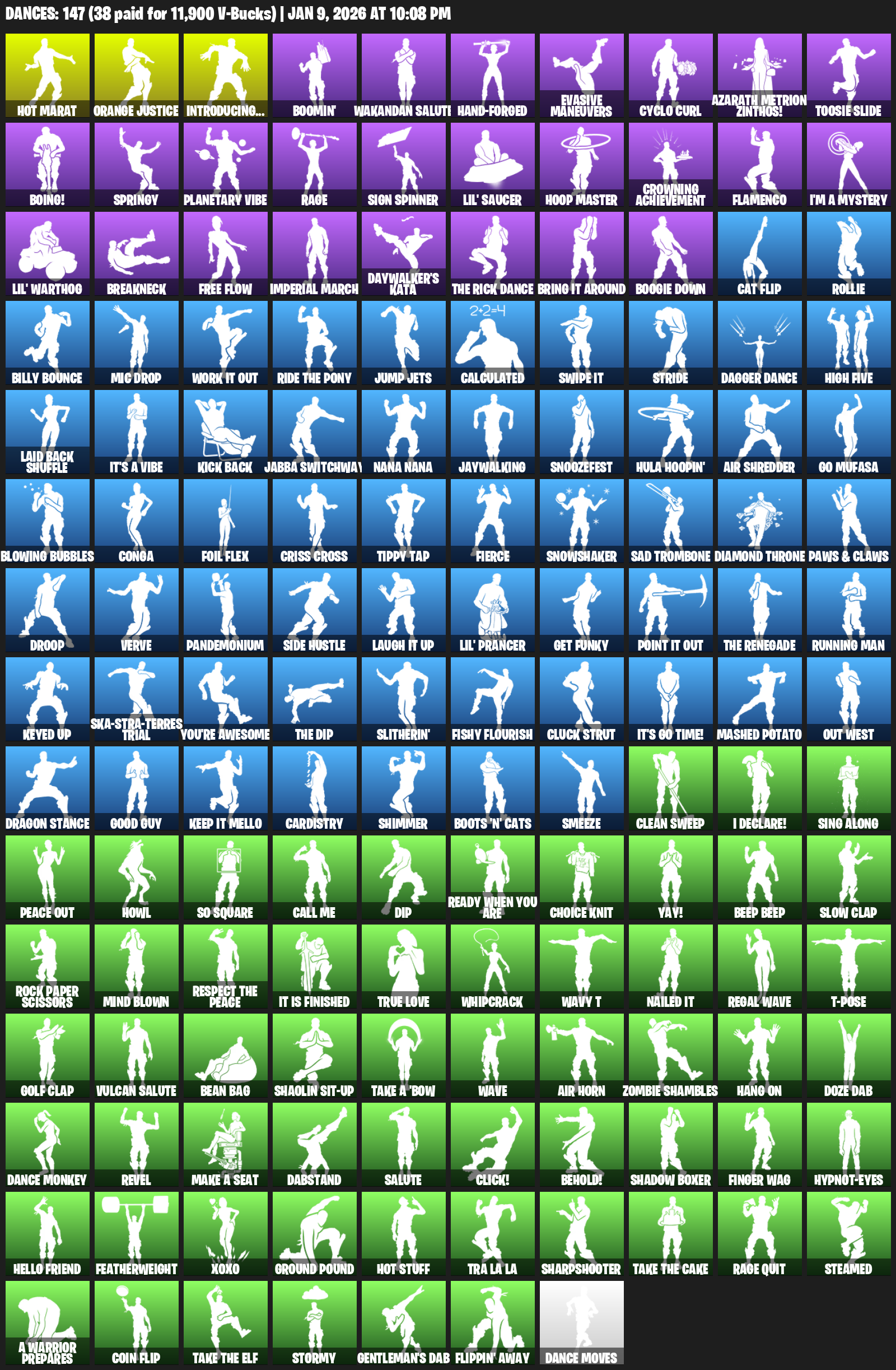 Hot Marat, Introducing…, Orange Justice, Boomin’, Wakandan Salute, Hand-Forged, Evasive Maneuvers, Cyclo Curl, Azarath Metrion Zinthos!, Toosie Slide, Boing!, Springy, Planetary Vibe, Rage, Sign Spinner, Lil’ Saucer, Hoop Master, Crowning Achievement, Flamenco, I’m a Mystery