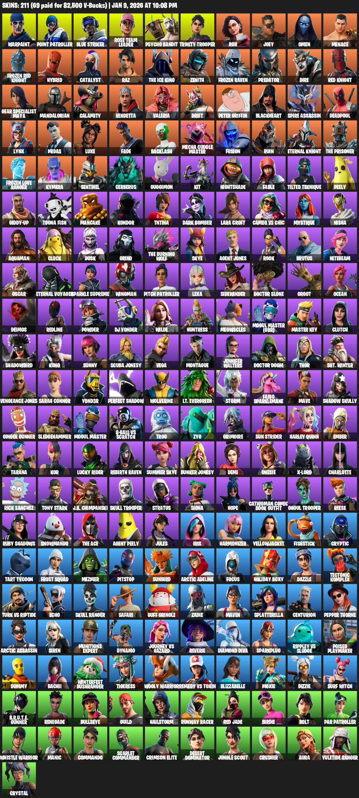 Point Patroller, Gear Specialist Maya, Lara Croft, Warpaint, Blue Striker, Rose Team Leader, Psycho Bandit, Trinity Trooper, Rox, Joey, Omen, Menace, Frozen Red Knight, Hybrid, Catalyst, Raz, The Ice King, Zenith, Predator