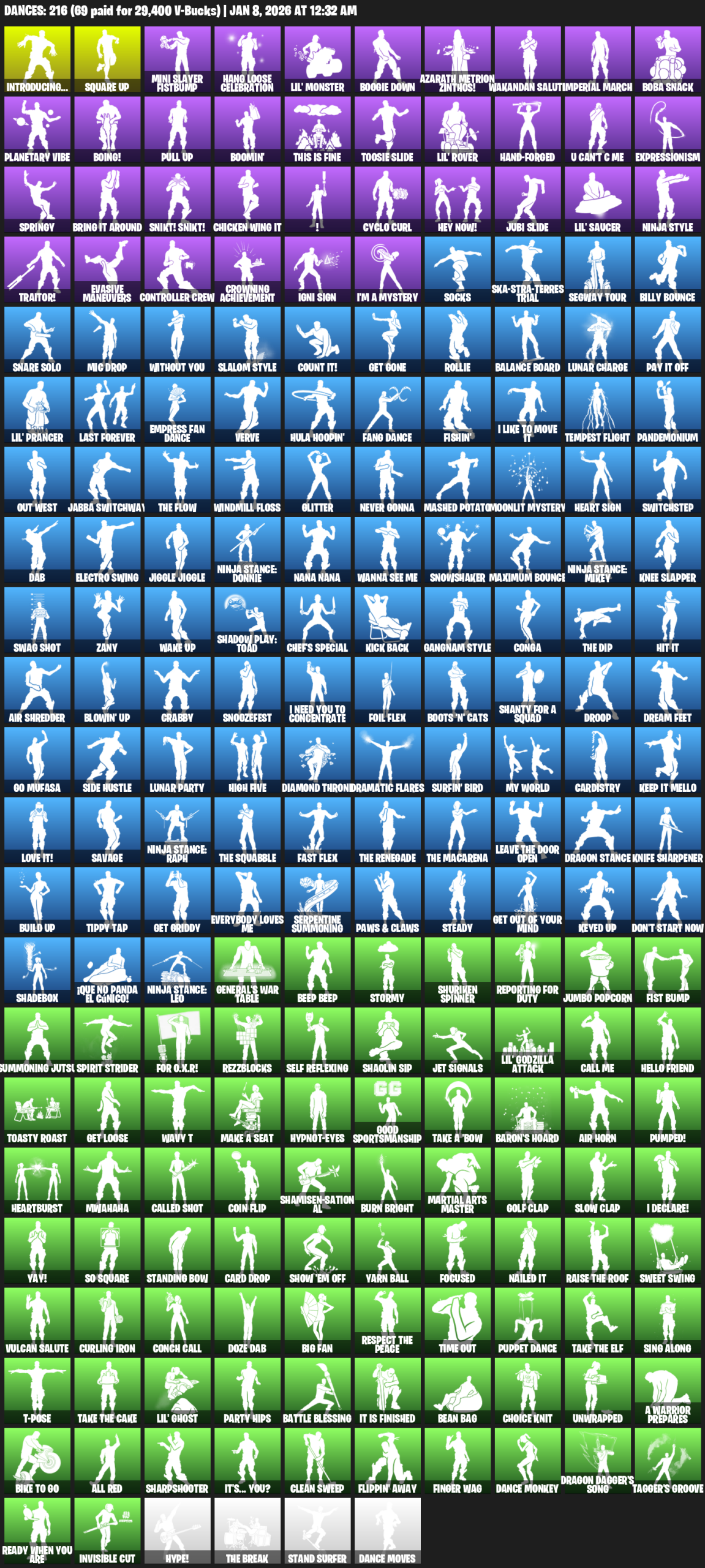 Introducing…, Square Up, Mini Slayer Fistbump, Hang Loose Celebration, Lil’ Monster, Boogie Down, Azarath Metrion Zinthos!, Wakandan Salute, Imperial March, Boba Snack, Planetary Vibe, Boing!, Boomin’, This is Fine, Toosie Slide, U Can’t C Me, Expressionism