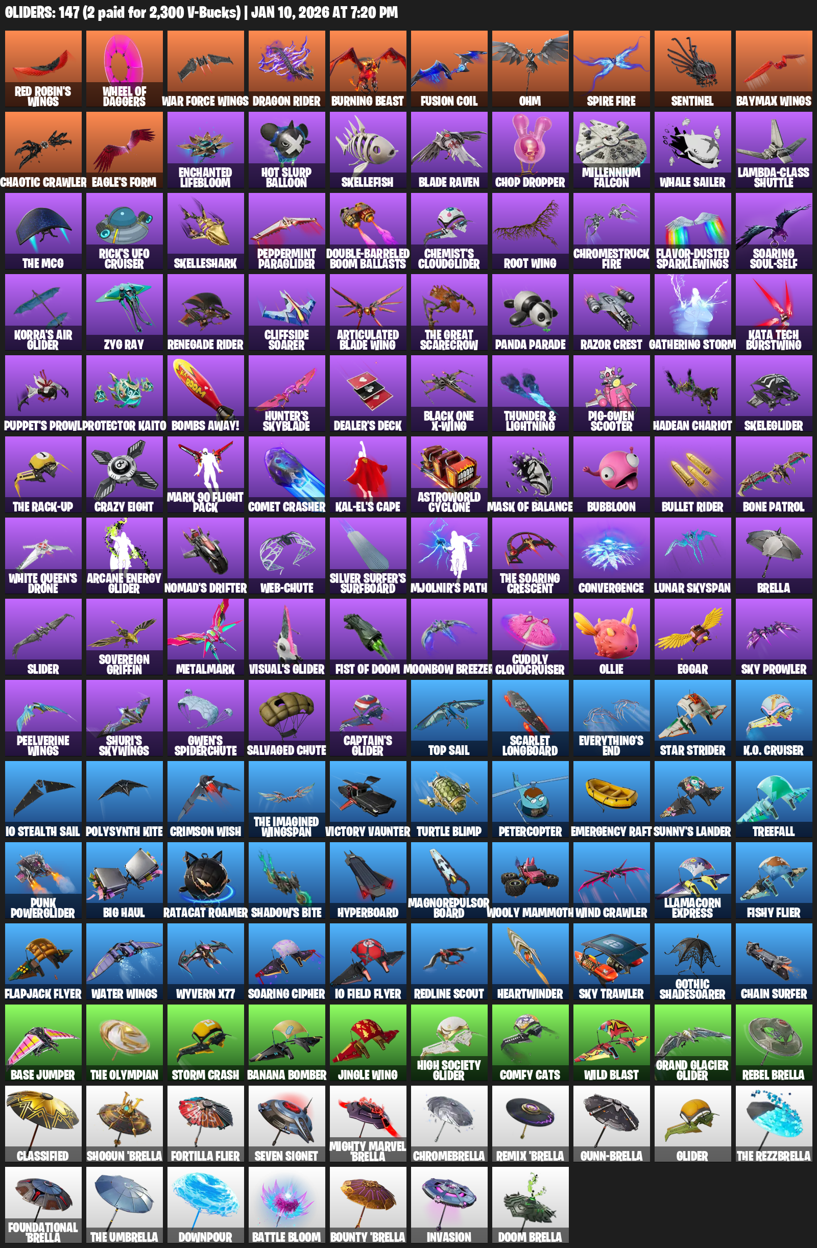 Red Robin’s Wings, Dragon Rider, Burning Beast, Ohm, Spire Fire, Sentinel, Chaotic Crawler, Eagle’s Form, Enchanted Lifebloom, Hot Slurp Balloon, Skellefish, Blade Raven, Chop Dropper, Millennium Falcon, Whale Sailer, Lambda-Class Shuttle