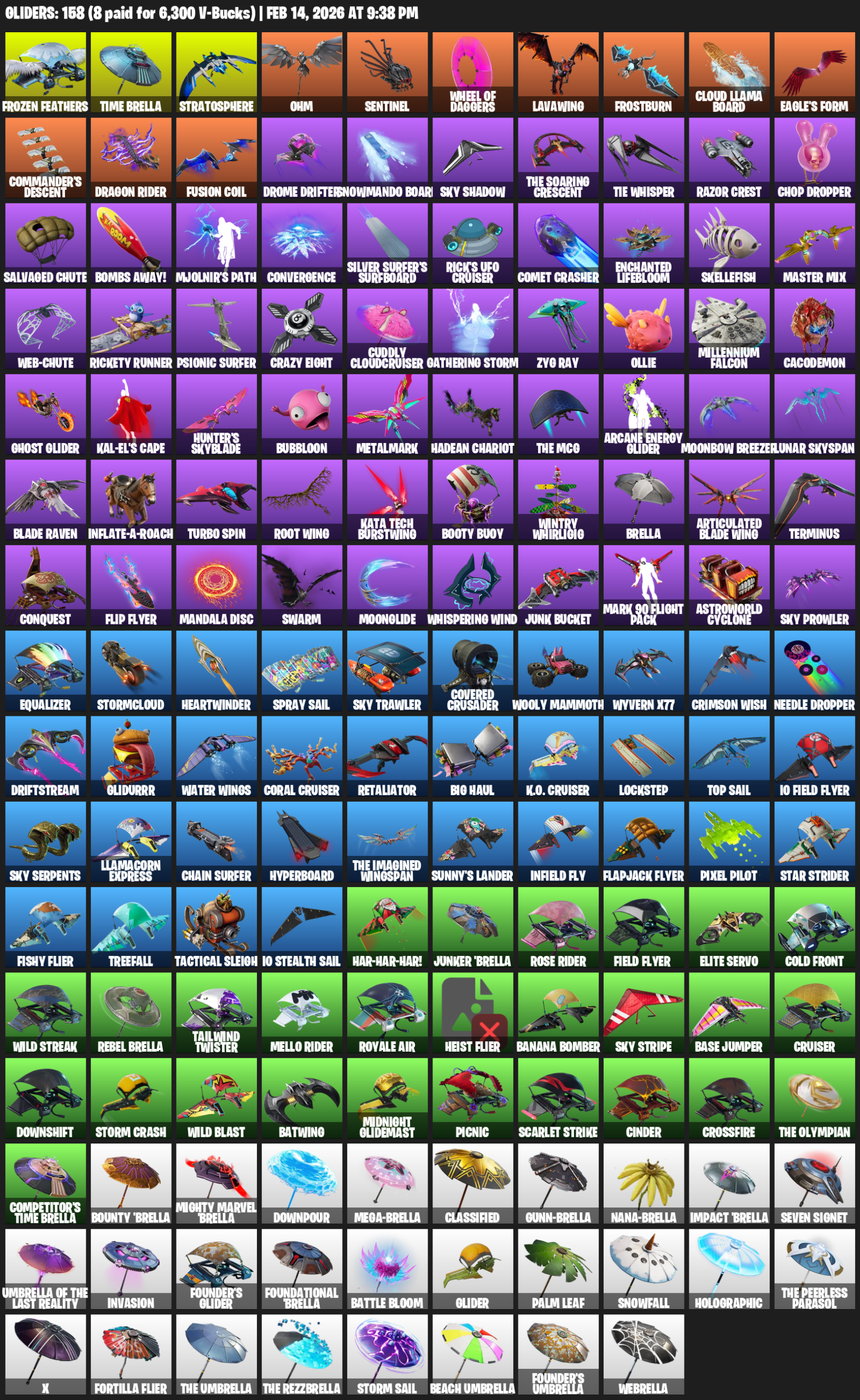 Time Brella, Stratosphere, Ohm, Wheel of Daggers, Lavawing, Frostburn, Cloud Llama Board, Eagle’s Form, Commander’s Descent, Dragon Rider, Fusion Coil, Drome Drifter, Sky Shadow, TIE Whisper, Razor Crest, Chop Dropper