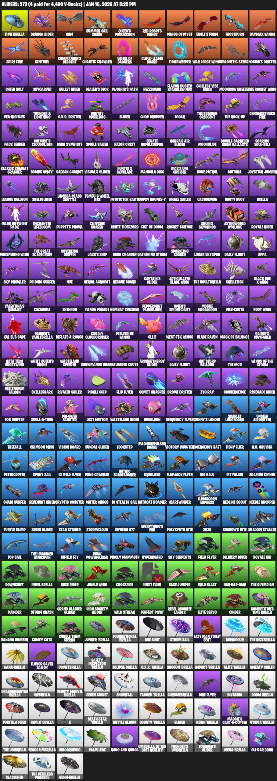 Time Brella, Dragon Rider, Ohm, Summer Sail Shark, Queen’s Procession, Red Robin’s Wings, Eagle’s Form, Frostburn, Spire Fire, Sentinel, Commander’s Descent, Chaotic Crawler, Cloud Llama Board, Timesweeper, Magnetic Steps, Nomad’s Drifter