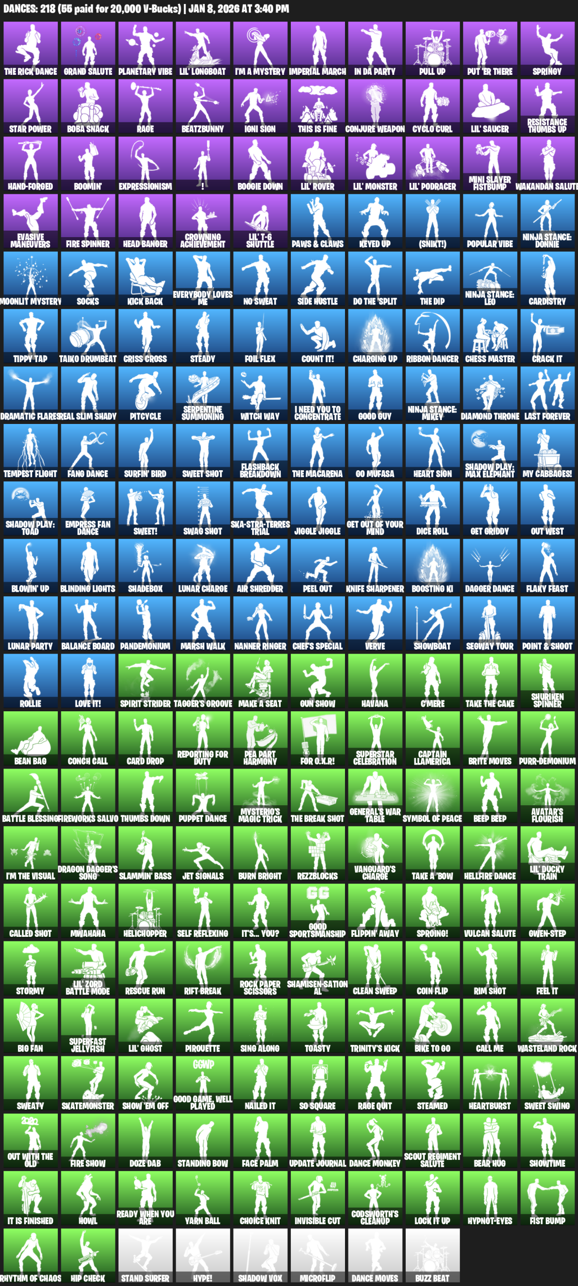 Grand Salute, Planetary Vibe, Lil’ Longboat, I’m a Mystery, Imperial March, In Da Party, Pull Up, Put ‘er There, Springy, Star Power, Boba Snack, Rage, BeatzBunny, Igni Sign, This is Fine, Conjure Weapon, Cyclo Curl