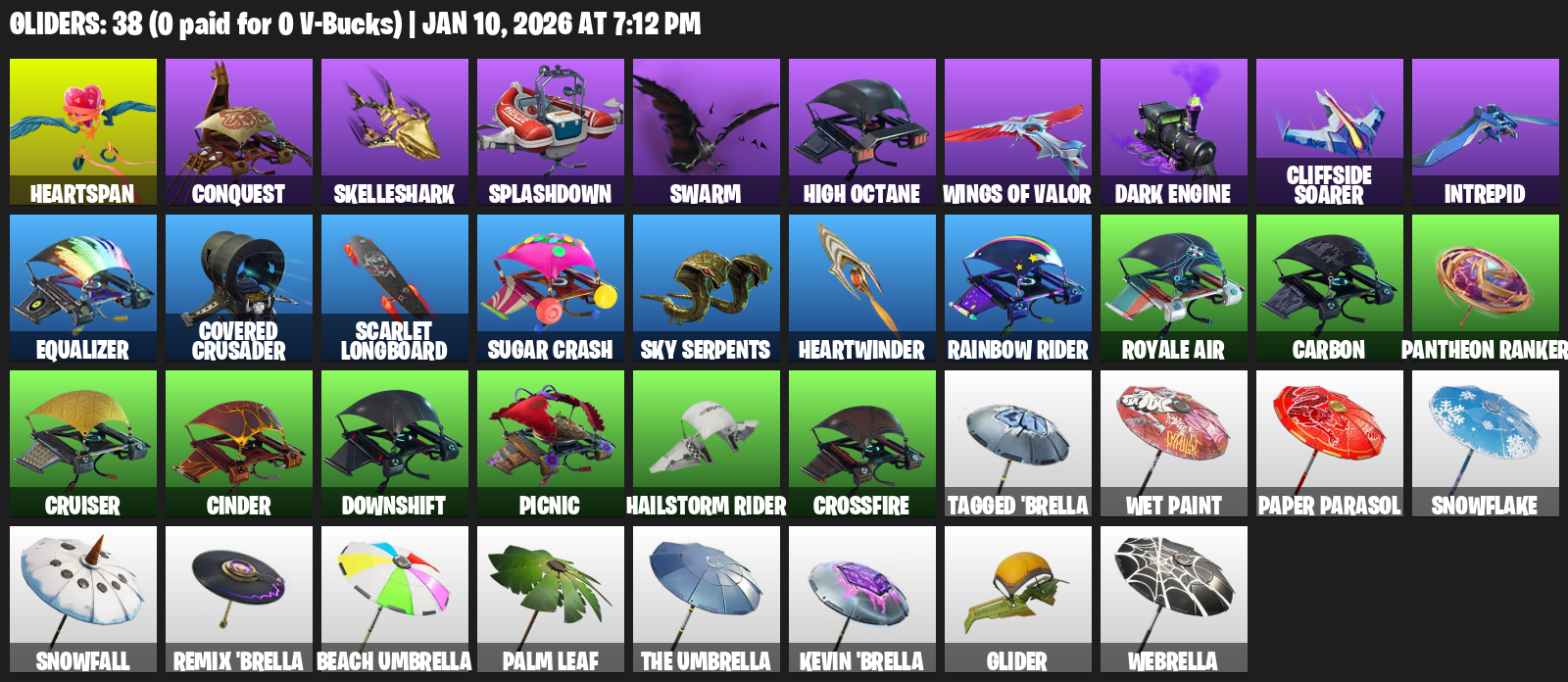 Heartspan, Conquest, Skelleshark, Splashdown, Swarm, High Octane, Cliffside Soarer, Intrepid, Equalizer, Covered Crusader, Scarlet Longboard, Sugar Crash, Sky Serpents, Heartwinder, Royale Air, Carbon, Pantheon Ranker