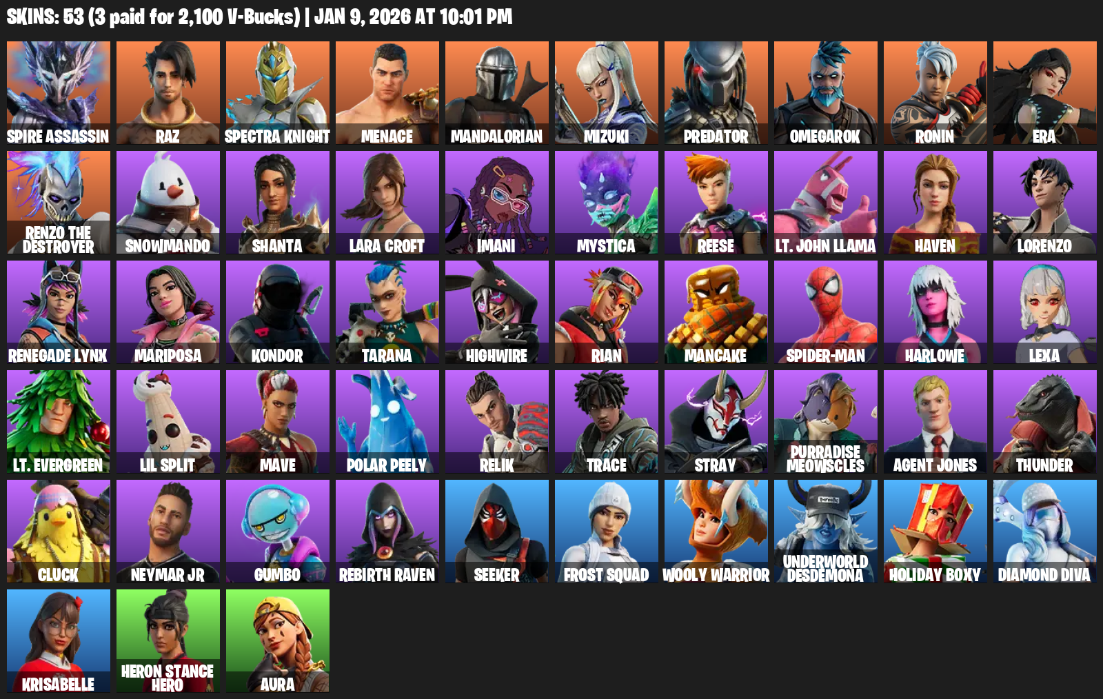 Lara Croft, Spire Assassin, Raz, Spectra Knight, Menace, Mandalorian, Mizuki, Predator, Omegarok, Ronin, Era, Renzo the Destroyer, Snowmando, Shanta, Imani, Mystica, Reese, Lt. John Llama, Haven, Lorenzo