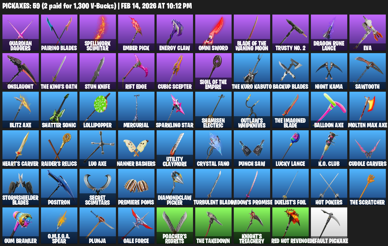 Guardian Daggers, Pairing Blades, Spellwork Scimitar, Ember Pick, Energy Claw, Omni Sword, Trusty No. 2, Dragon Rune Lance, EVA, Onslaught, Stun Knife, Rift Edge, Cubic Scepter, Night Kama, Sawtooth