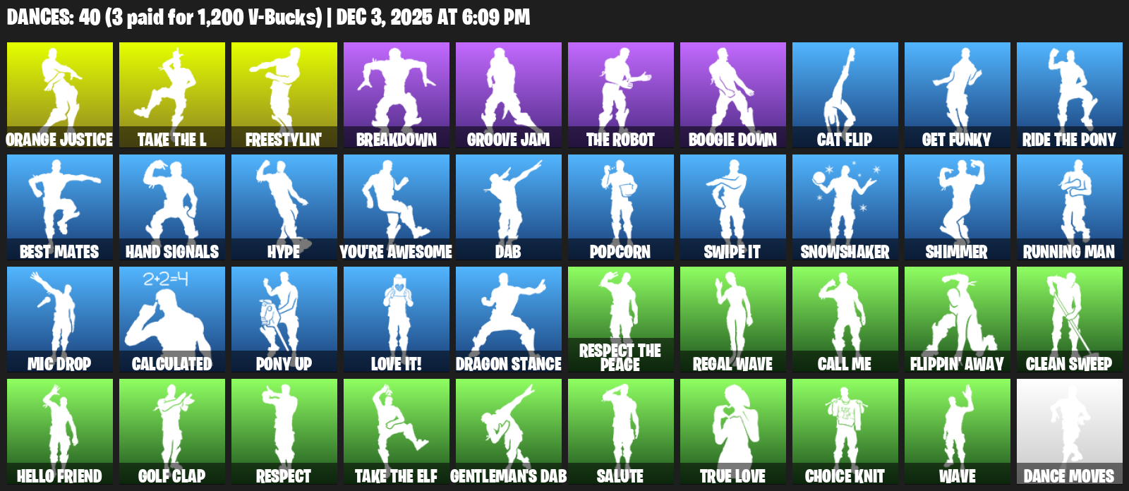 Orange Justice, Freestylin’, Breakdown, Groove Jam, Boogie Down, Cat Flip, Get Funky, Best Mates, Hand Signals, Hype, You’re Awesome, Dab, Popcorn, Swipe It, Snowshaker, Shimmer, Running Man