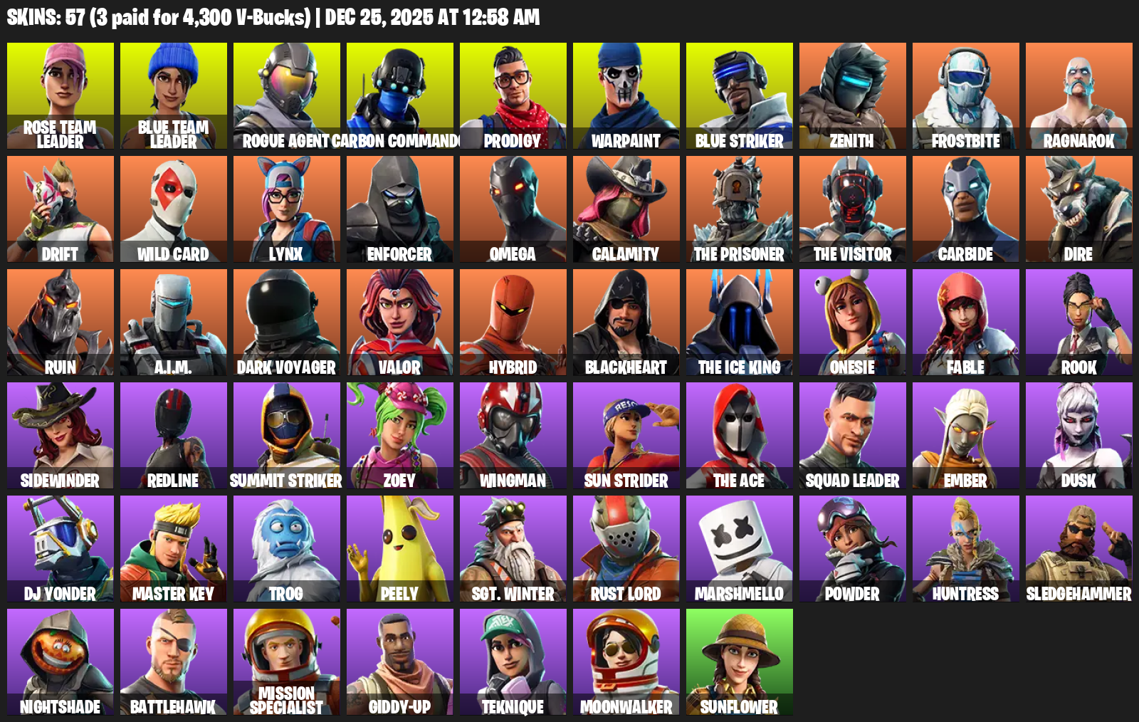 Omega, Rose Team Leader, Rogue Agent, Carbon Commando, Prodigy, Warpaint, Blue Striker, Zenith, Frostbite, Ragnarok, Drift, Wild Card, Lynx, Enforcer, Calamity, The Prisoner, Carbide, Dire