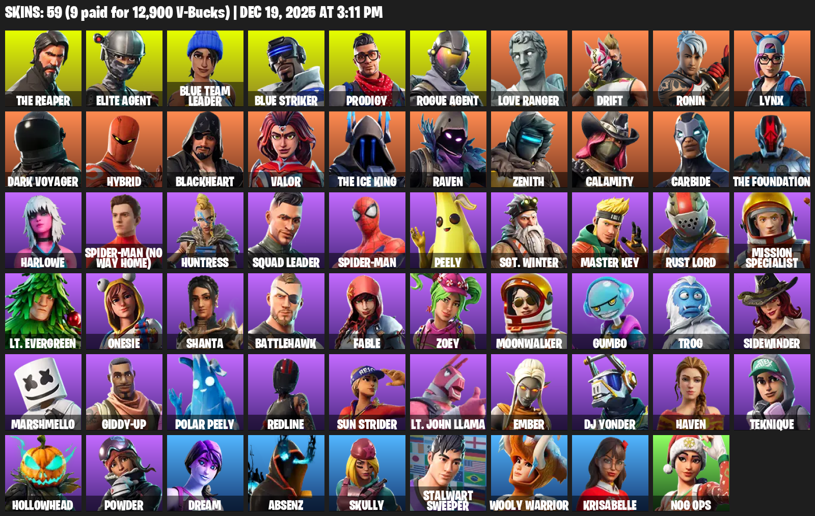 The Reaper, Elite Agent, Blue Team Leader, Prodigy, Love Ranger, Drift, Ronin, Lynx, Dark Voyager, Hybrid, Blackheart, Valor, Raven, Zenith, Calamity, Carbide