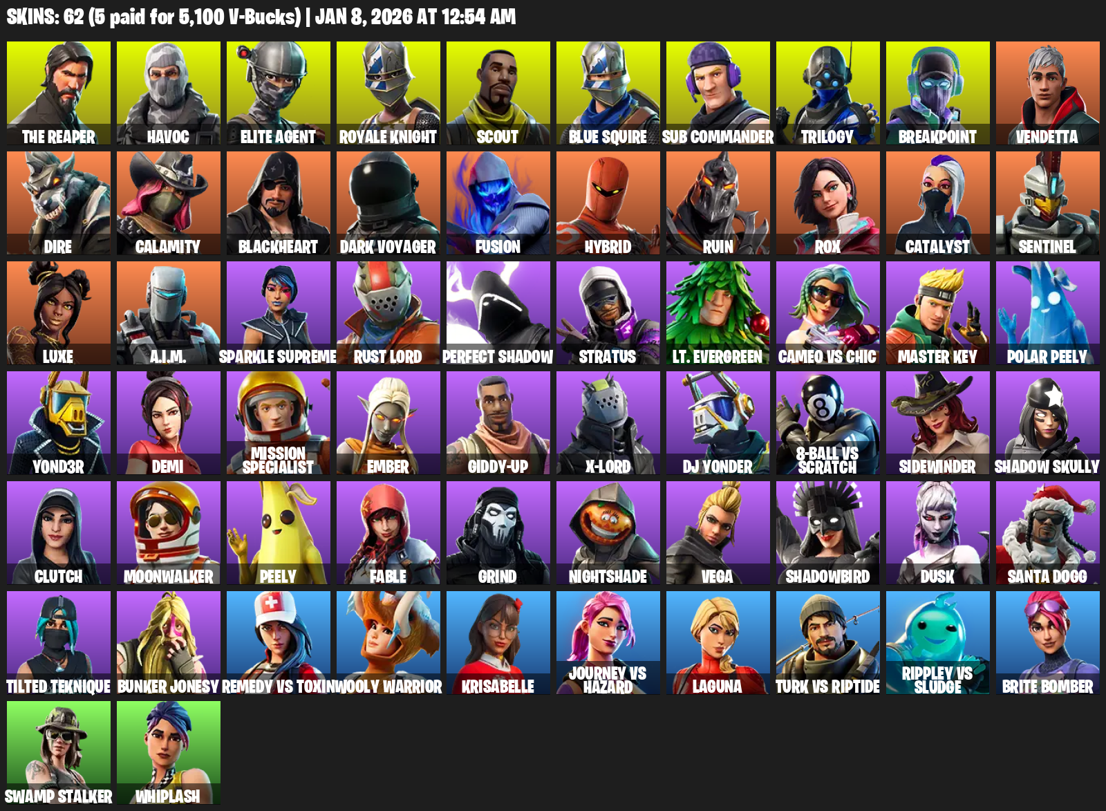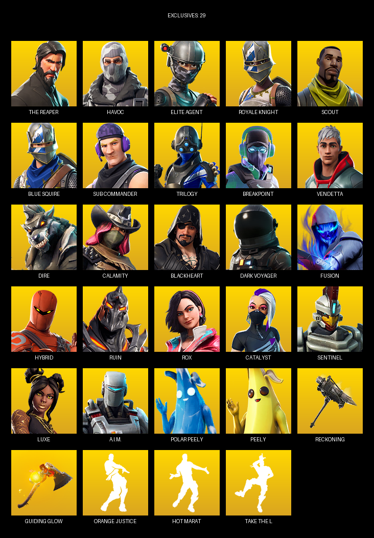 The Reaper, Elite Agent, Royale Knight, Blue Squire, Havoc, Scout, Sub Commander, Trilogy, Breakpoint, Vendetta, Dire, Calamity, Blackheart, Dark Voyager, Fusion, Hybrid, Ruin, Rox, Catalyst, Sentinel