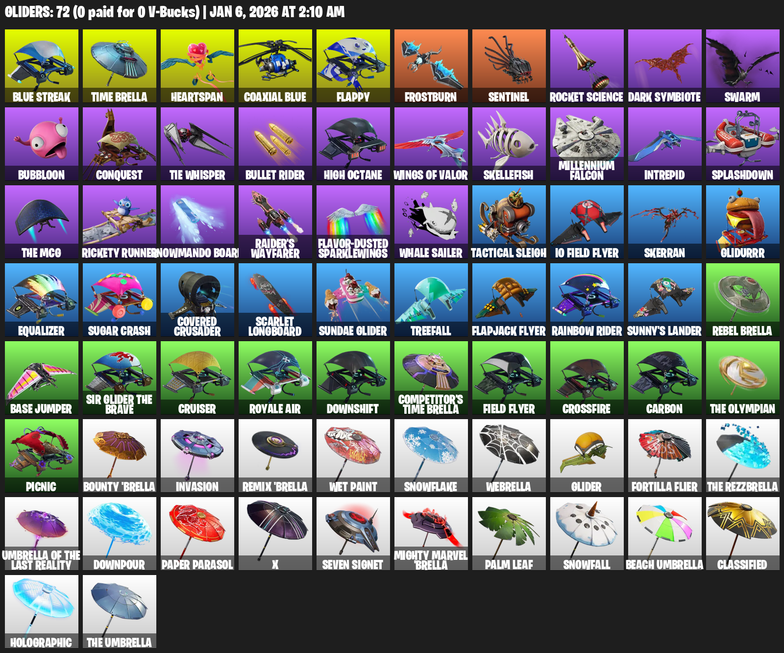 Time Brella, Heartspan, Flappy, Frostburn, Sentinel, Rocket Science, Swarm, Bubbloon, Conquest, TIE Whisper, Bullet Rider, High Octane, Skellefish, Millennium Falcon, Intrepid, Splashdown