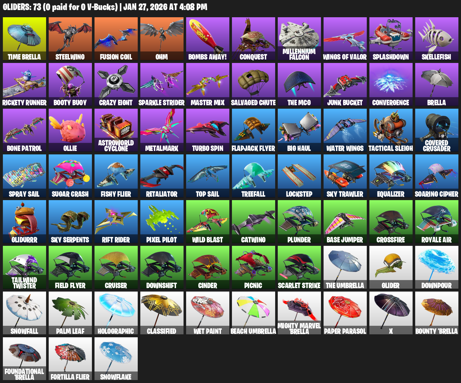 Reckoning, Rift Edge, Harmonic Axes, Ice Scepter, Vox, Sludgehammer, Swag Smasher, Scorcher, Eon Blades, Dragon’s Claw, Mech Axe, Scratchmark, Vanquisher, Bunker Basher, Highlight Strikers, Guiding Glow, Dread