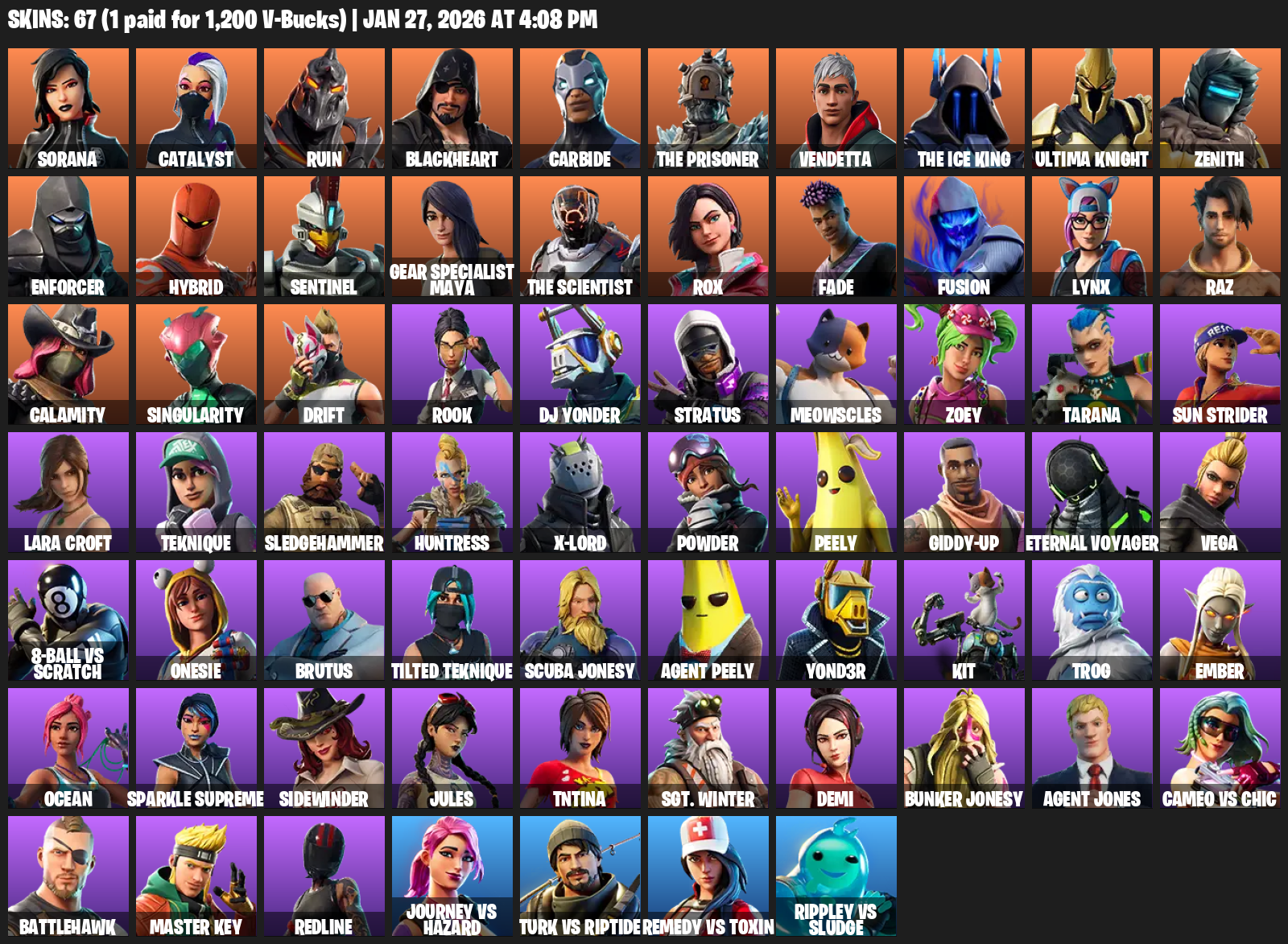 Gear Specialist Maya, Lara Croft, Sorana, Catalyst, Ruin, Blackheart, Carbide, The Prisoner, Vendetta, Ultima Knight, Zenith, Enforcer, Hybrid, Sentinel, Rox, Fade, Fusion, Lynx