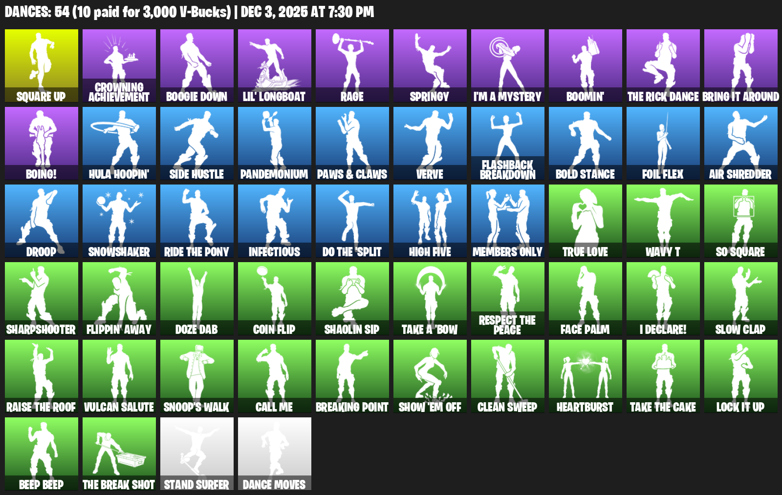 Square Up, Crowning Achievement, Boogie Down, Lil’ Longboat, Rage, Springy, I’m a Mystery, Boomin’, Bring it around, Boing!, Hula Hoopin’, Side Hustle, Pandemonium, Paws & Claws, Verve, Flashback Breakdown, Bold Stance, Foil Flex