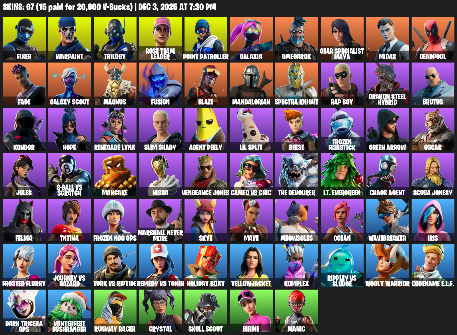 Point Patroller, Gear Specialist Maya, Fixer, Warpaint, Trilogy, Rose Team Leader, Galaxia, Omegarok, Midas, Deadpool, Fade, Galaxy Scout, Magnus, Fusion, Blaze, Mandalorian, Spectra Knight, Rap Boy, Drakon Steel Hybrid, Brutus
