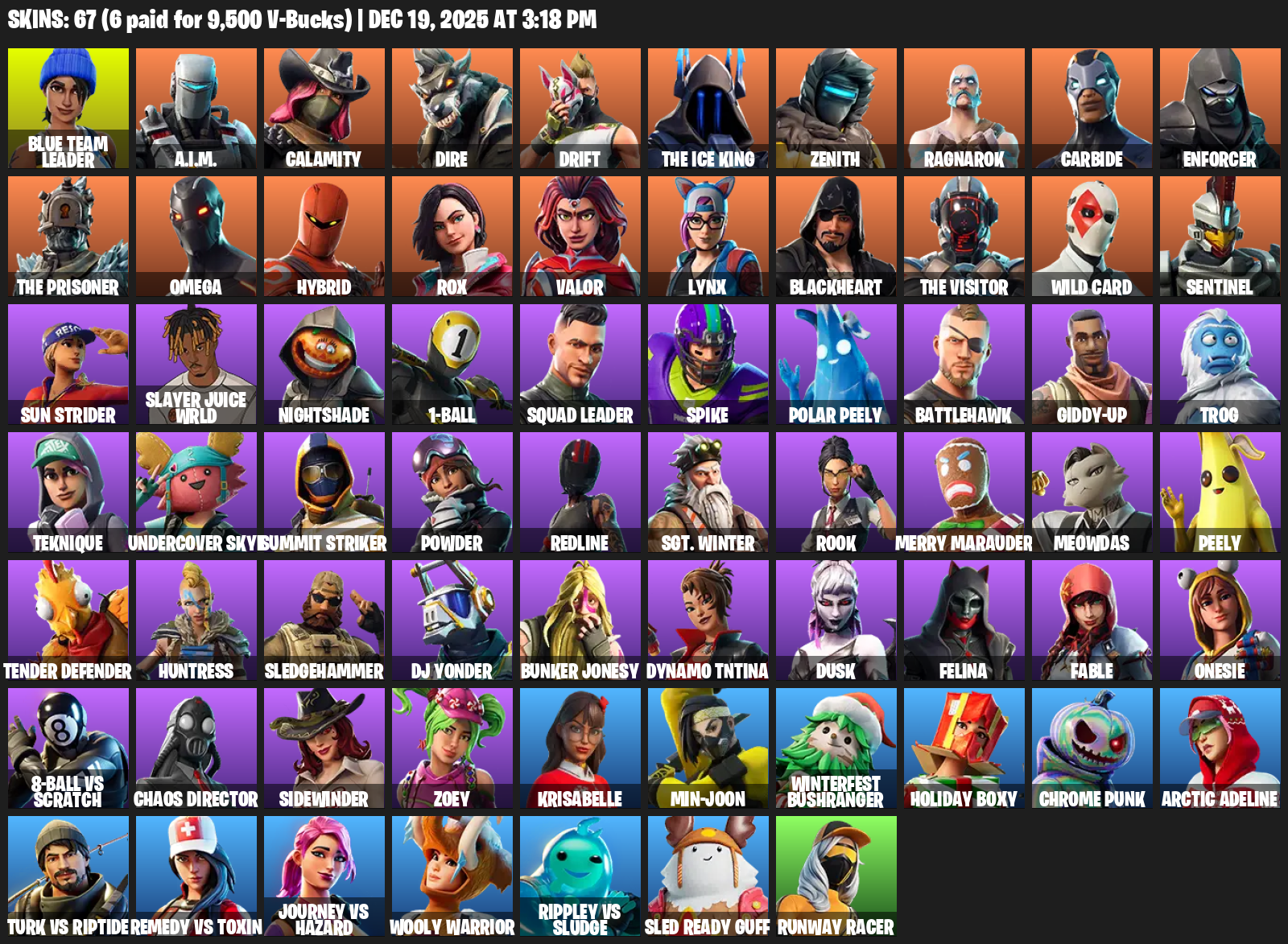 [PC/XBOX] | 67 skins | Omega | Reaper Axe | Blue Team Leader | A.I.M. | Calamity | Dire | Drift | The Ice King | Zenith | Ragnarok | #LJA3691