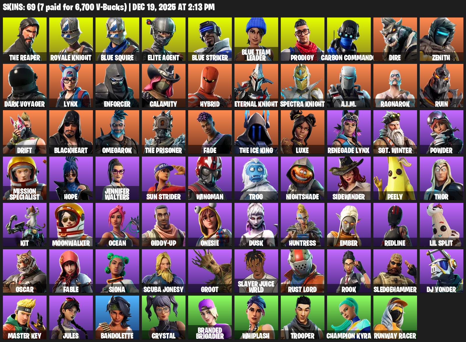 [PC/XBOX] | 69 skins | Take The L | The Reaper | Elite Agent | Prodigy | Cloud Striker | Blue Team Leader | Carbon Commando | Fade | #JFG7036 $82.99 $56.99