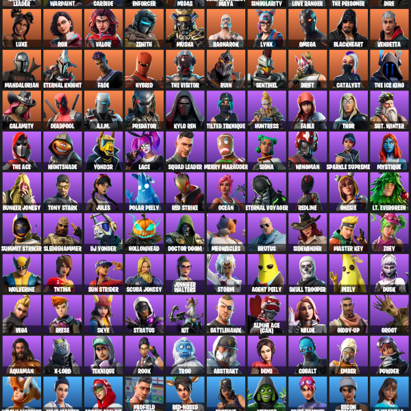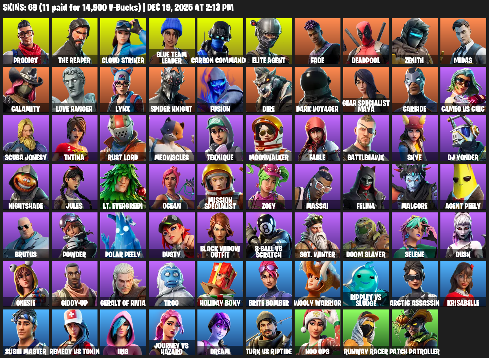 The Reaper, Elite Agent, Gear Specialist Maya, Prodigy, Cloud Striker, Blue Team Leader, Carbon Commando, Fade, Deadpool, Zenith, Midas, Calamity, Love Ranger, Lynx, Spider Knight, Fusion, Dire, Dark Voyager, Carbide, Cameo vs Chic