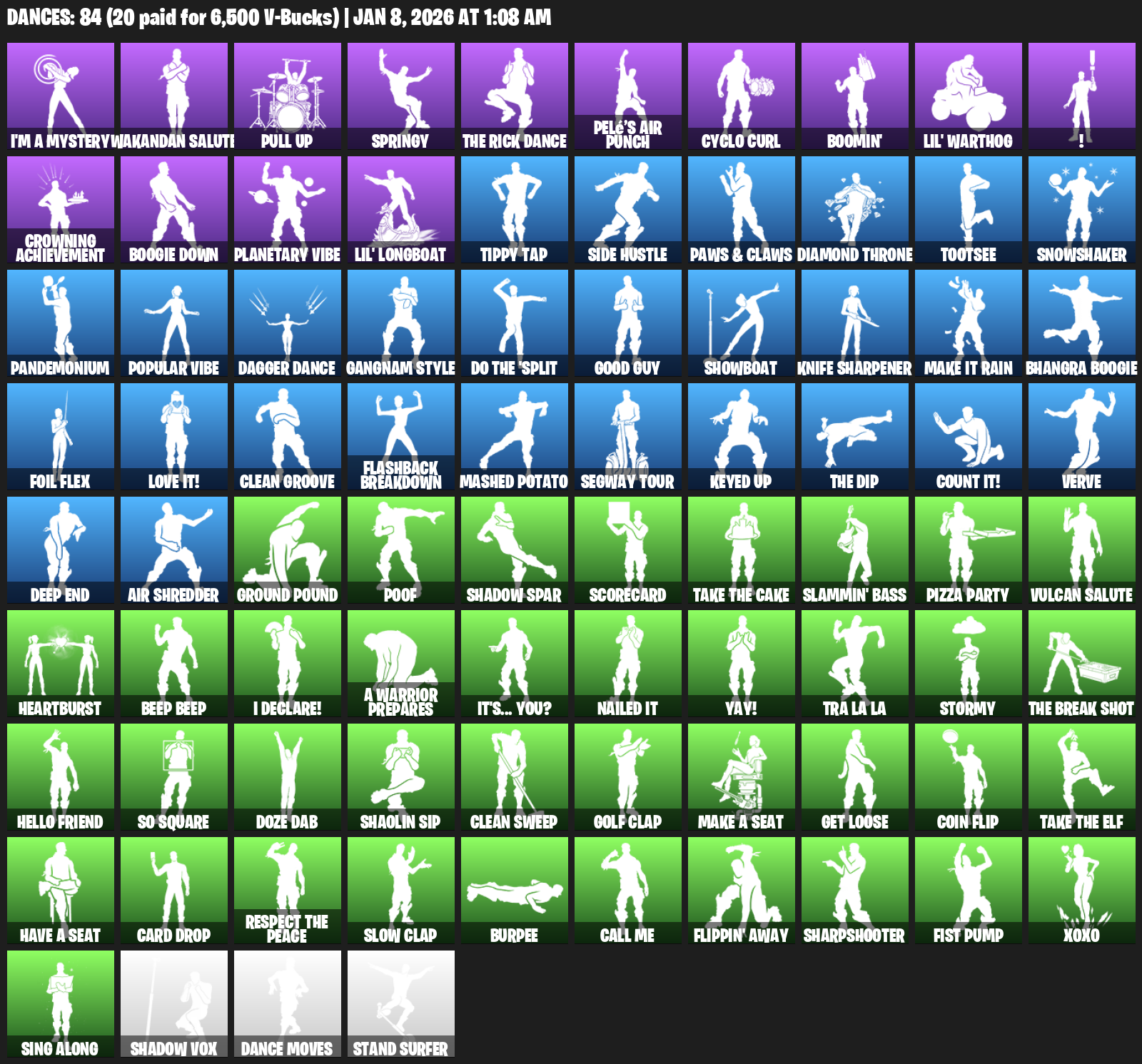 I’m a Mystery, Wakandan Salute, Pull Up, Springy, Pelé’s Air Punch, Cyclo Curl, Boomin’, Lil’ Warthog, !, Crowning Achievement, Boogie Down, Planetary Vibe, Tippy Tap, Side Hustle, Diamond Throne, Tootsee, Snowshaker