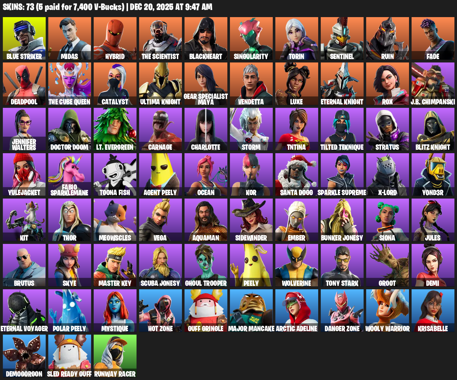 Gear Specialist Maya, Blue Striker, Midas, Hybrid, The Scientist, Blackheart, Singularity, Torin, Sentinel, Ruin, Fade, Deadpool, Catalyst, Ultima Knight, Vendetta, Luxe, Rox, J.B. Chimpanski