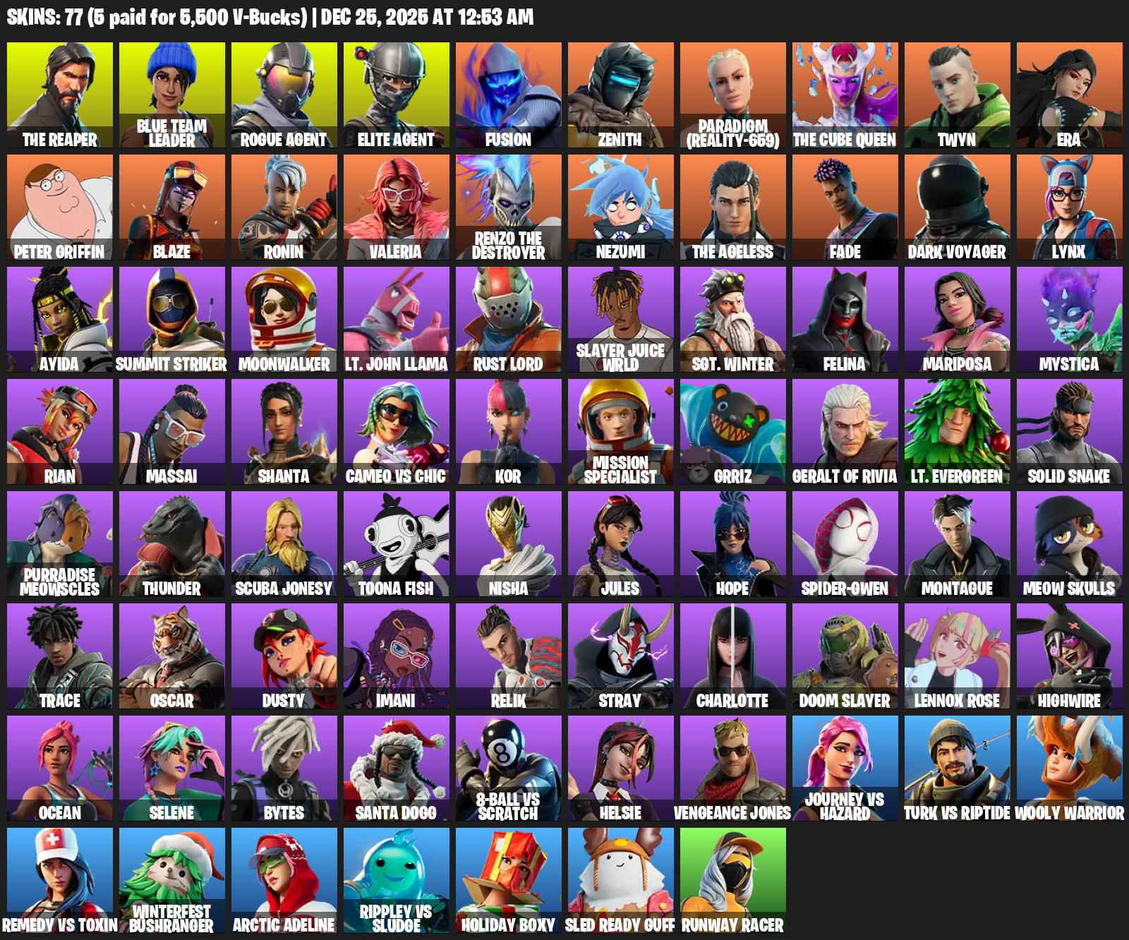 [PC/XBOX] | 77 skins | Take The L | The Reaper | Elite Agent | Blue Team Leader | Rogue Agent | Fusion | Zenith | Paradigm (Reality-659) | #AZN7593