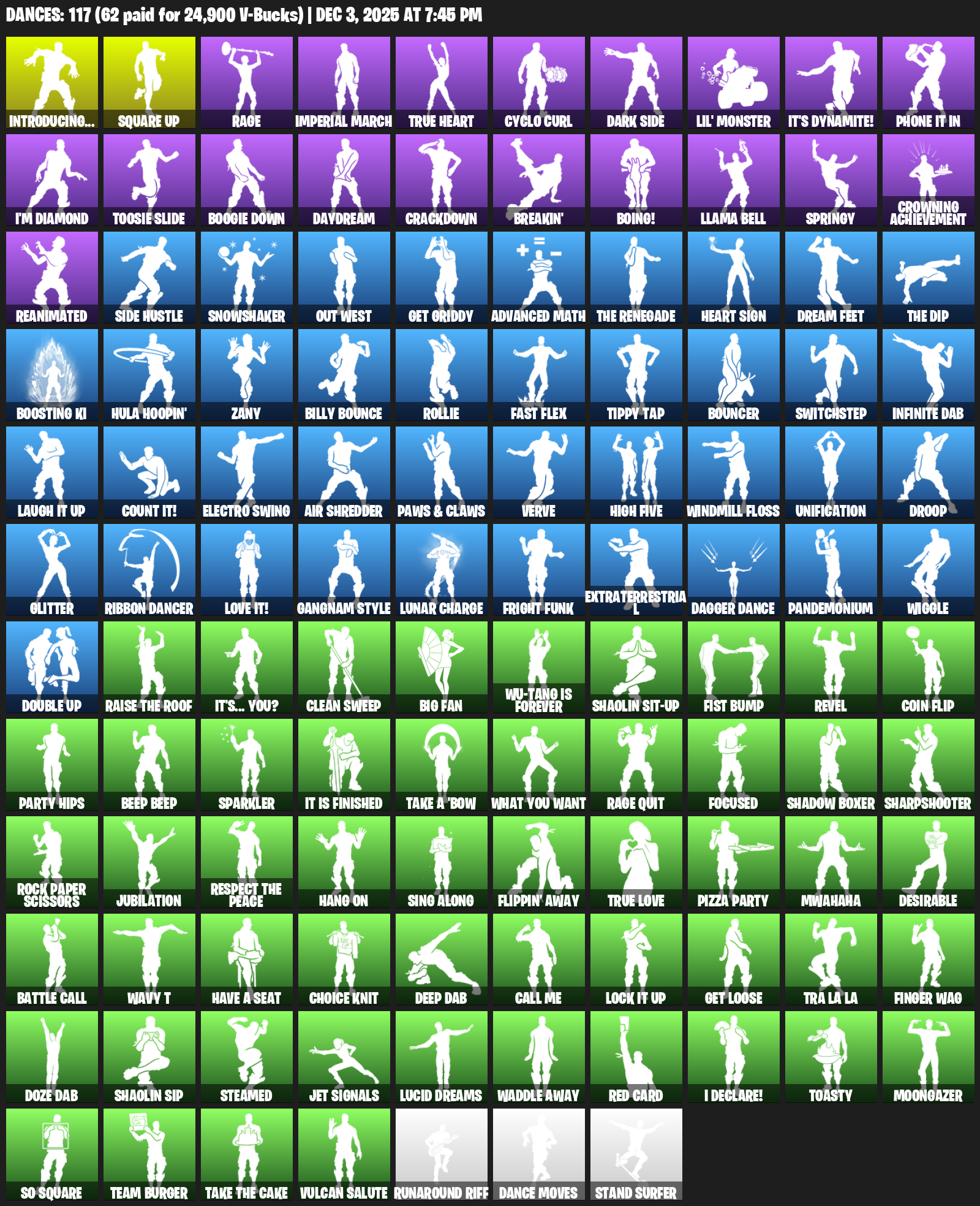 Introducing…, Square Up, Rage, Imperial March, True Heart, Cyclo Curl, Lil’ Monster, It’s Dynamite!, Phone It In, I’m Diamond, Toosie Slide, Boogie Down, Daydream, Crackdown, Breakin’, Boing!, Springy, Crowning Achievement