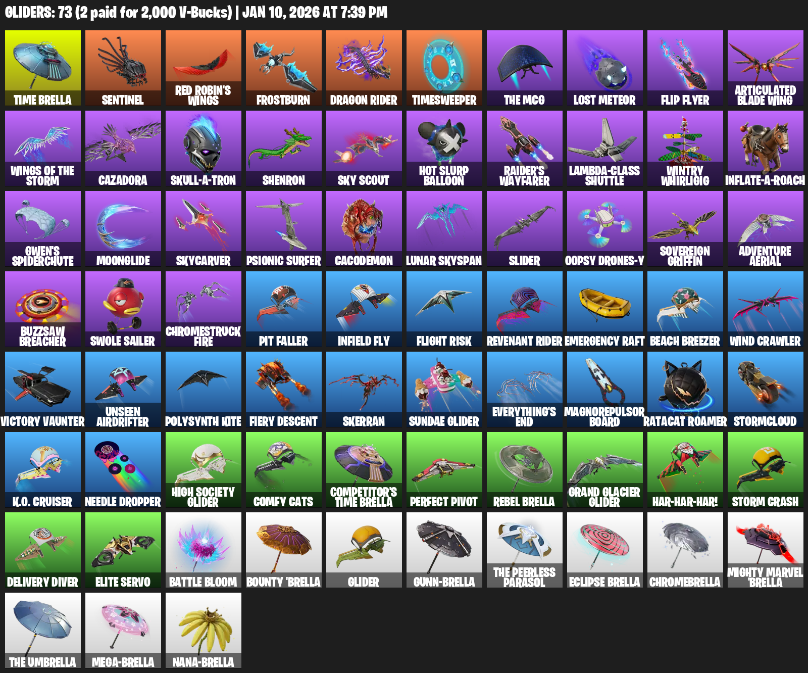 Time Brella, Sentinel, Red Robin’s Wings, Frostburn, Timesweeper, Lost Meteor, Flip Flyer, Cazadora, Shenron, Sky Scout, Hot Slurp Balloon, Raider’s Wayfarer, Lambda-Class Shuttle, Wintry Whirligig