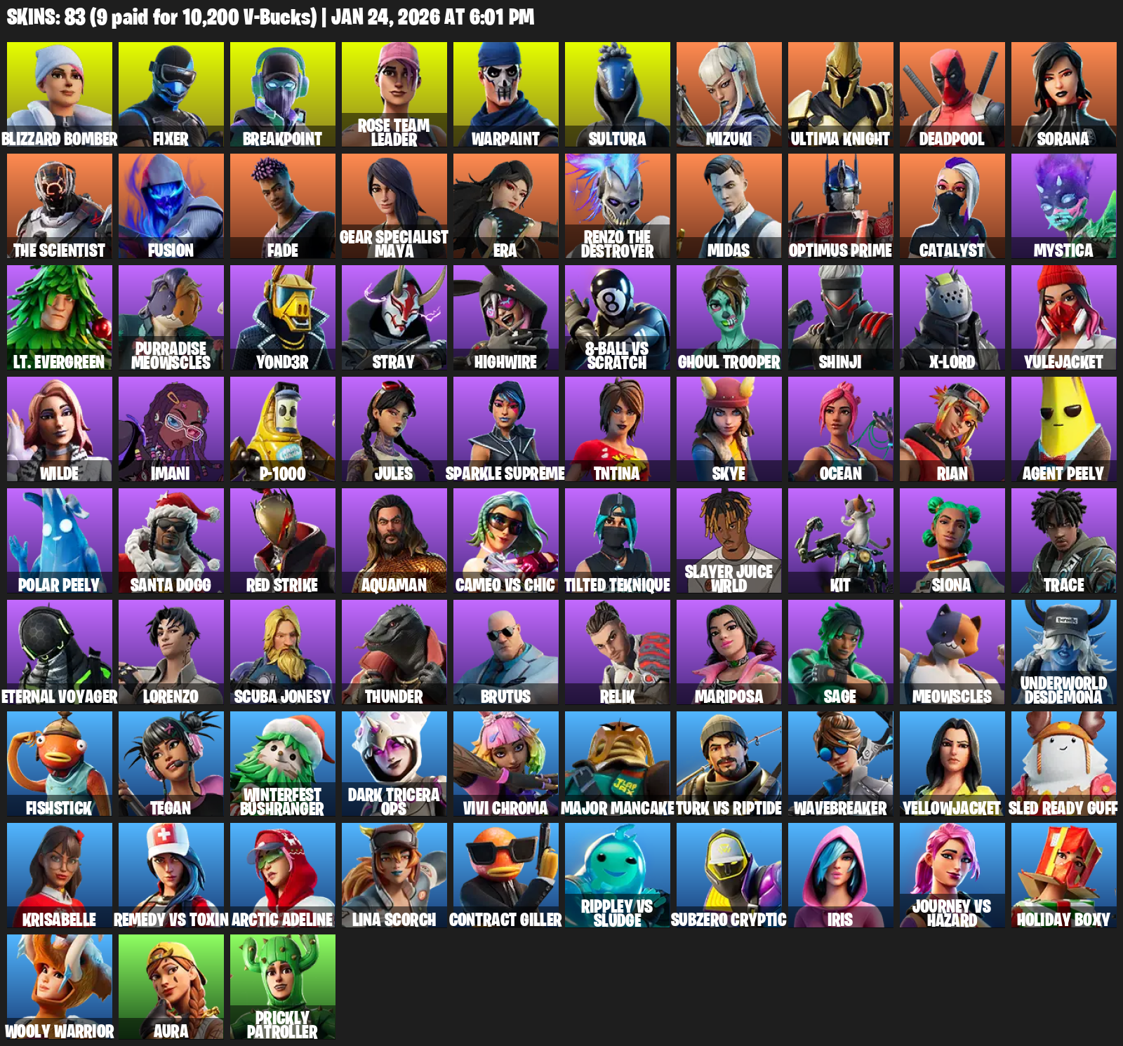 [PC/XBOX] | 83 skins | OG STW | Reaper Axe | Blizzard Bomber | Fixer | Breakpoint | Rose Team Leader | Warpaint | Sultura | Mizuki | #WIT6830