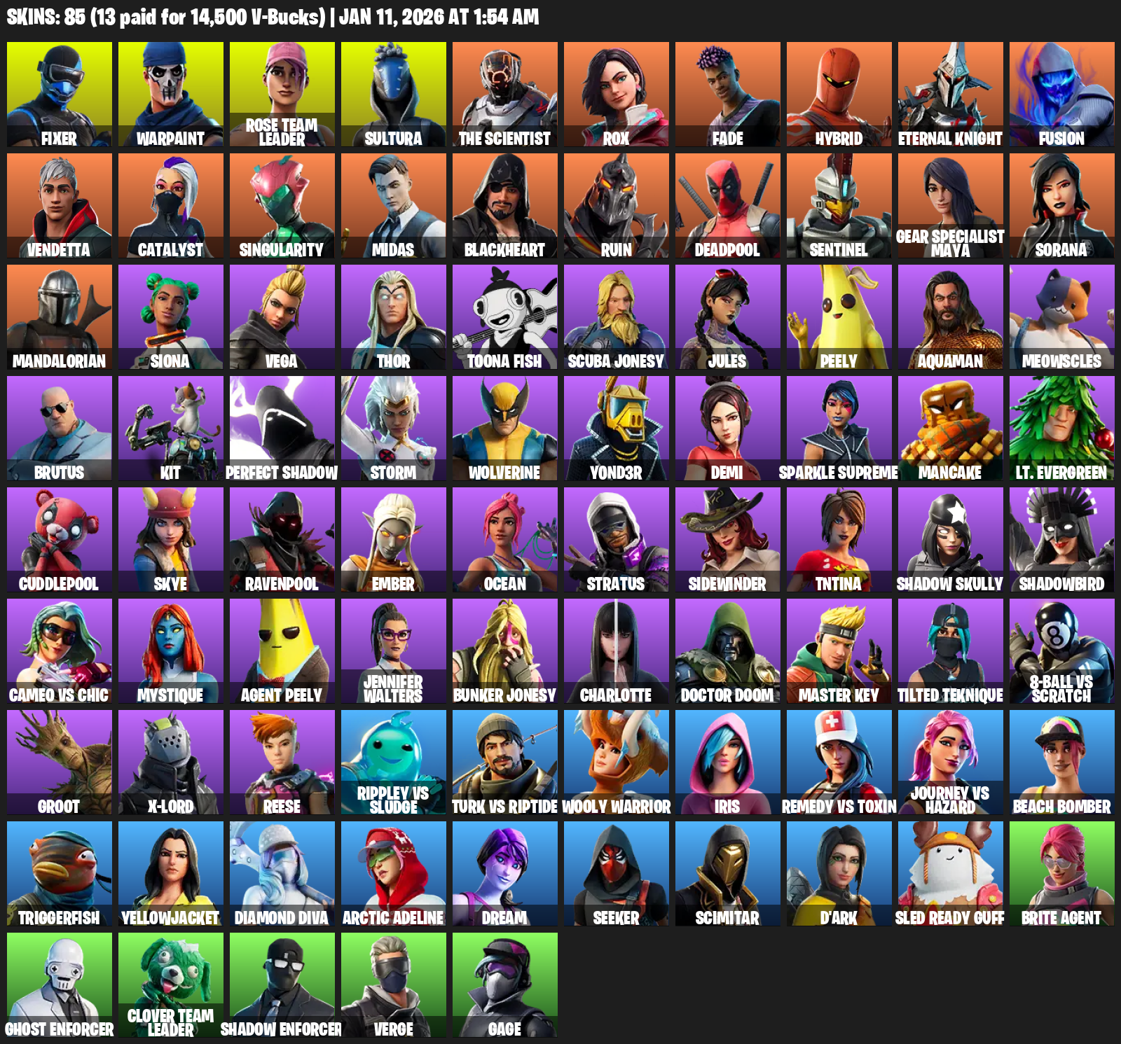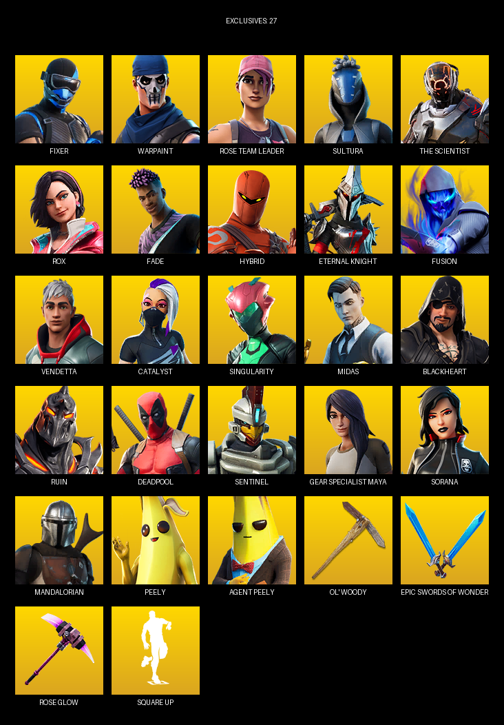 Gear Specialist Maya, Fixer, Warpaint, Rose Team Leader, Sultura, The Scientist, Rox, Fade, Hybrid, Eternal Knight, Fusion, Vendetta, Catalyst, Singularity, Midas, Blackheart, Ruin, Deadpool, Sentinel, Sorana