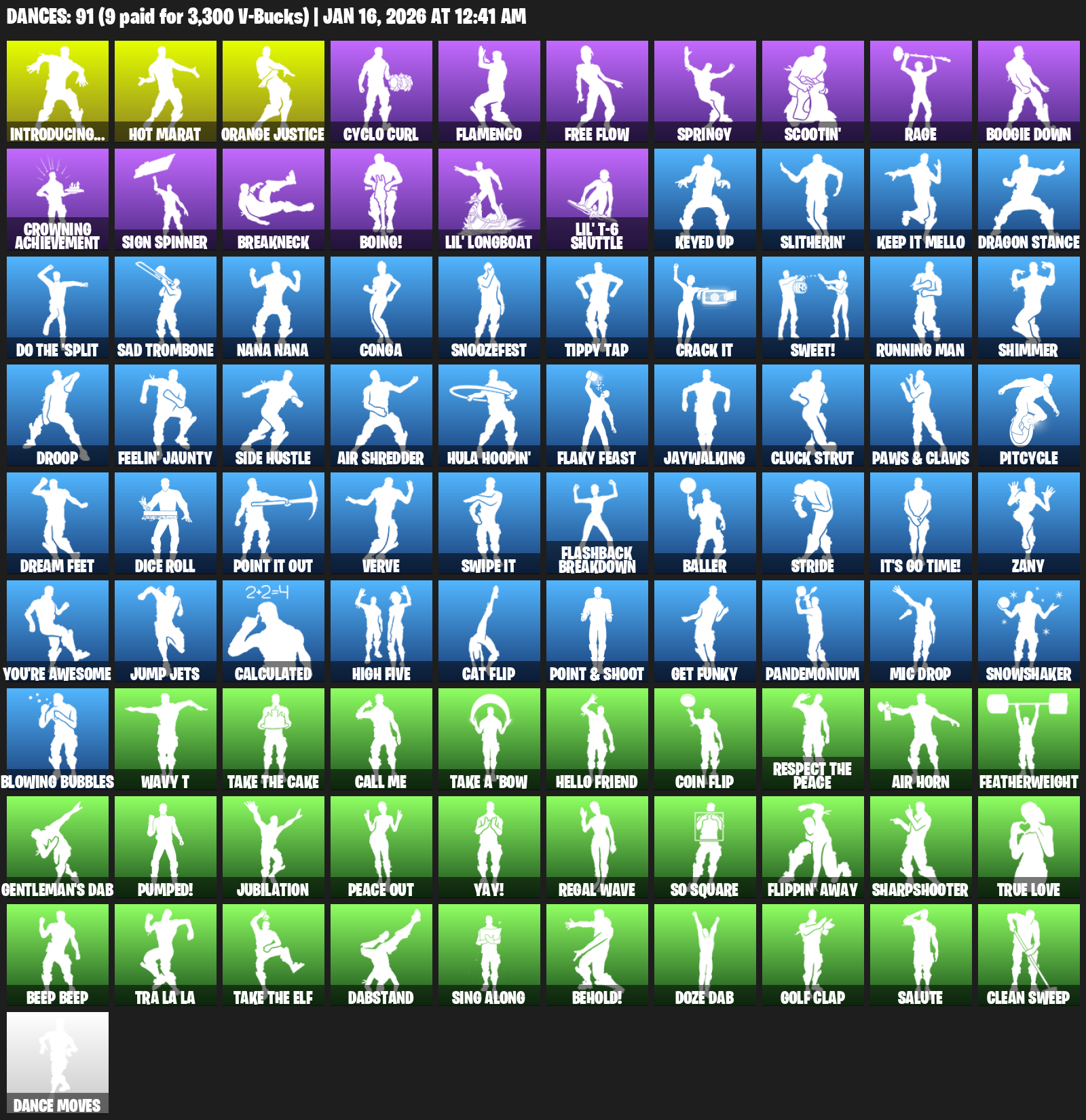 Introducing…, Hot Marat, Orange Justice, Cyclo Curl, Flamenco, Free Flow, Springy, Scootin’, Rage, Boogie Down, Crowning Achievement, Sign Spinner, Breakneck, Boing!, Lil’ Longboat, Keyed Up, Slitherin’, Keep It Mello, Dragon Stance