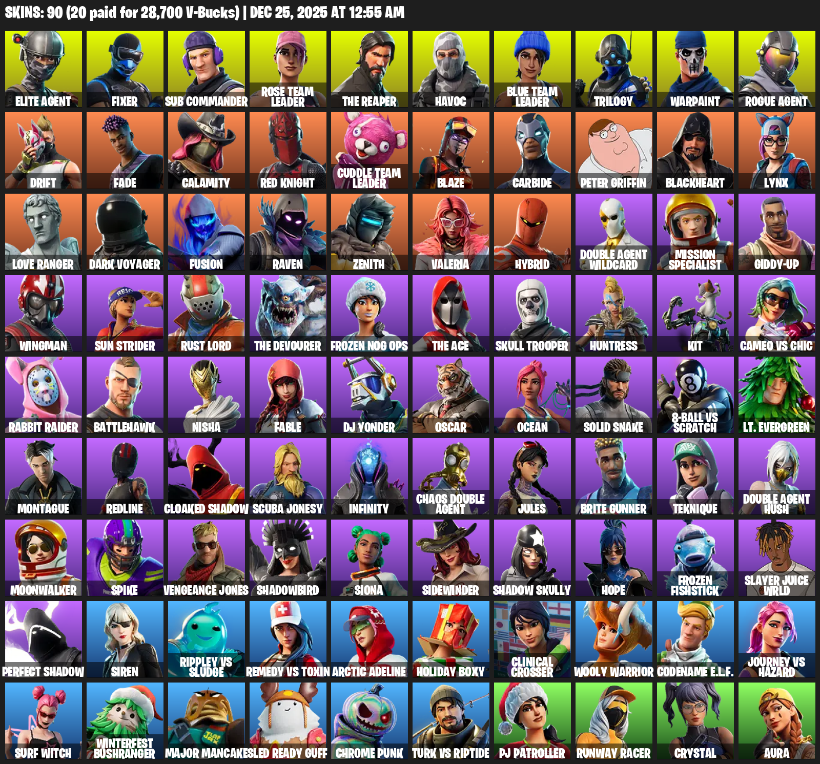 Elite Agent, The Reaper, Fixer, Sub Commander, Rose Team Leader, Havoc, Trilogy, Warpaint, Drift, Fade, Calamity, Red Knight, Blaze, Carbide, Peter Griffin, Blackheart, Lynx