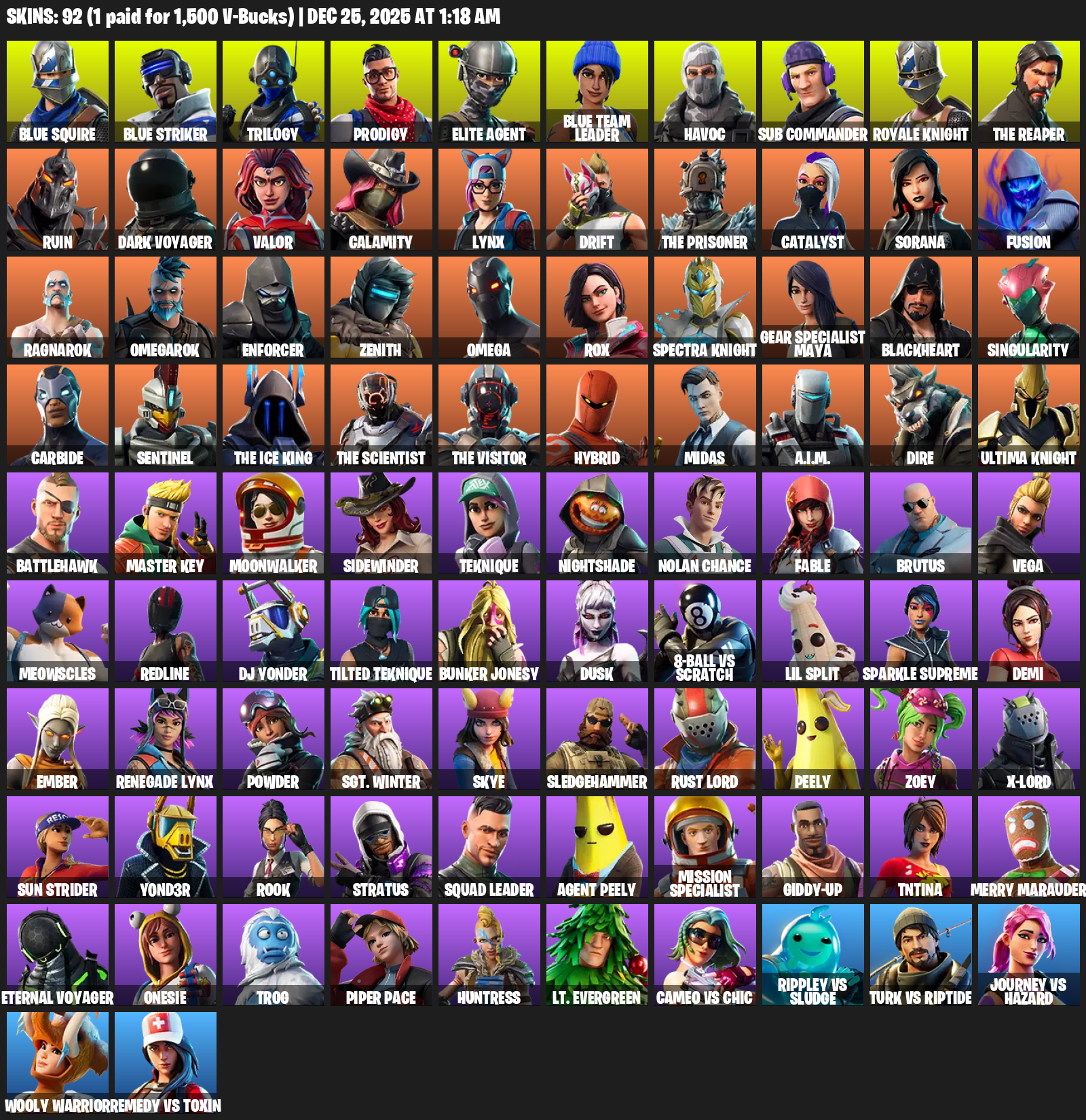Blue Squire, Elite Agent, Royale Knight, The Reaper, Omega, Gear Specialist Maya, Trilogy, Prodigy, Havoc, Sub Commander, Ruin, Dark Voyager, Valor, Calamity, Lynx, Drift, Catalyst