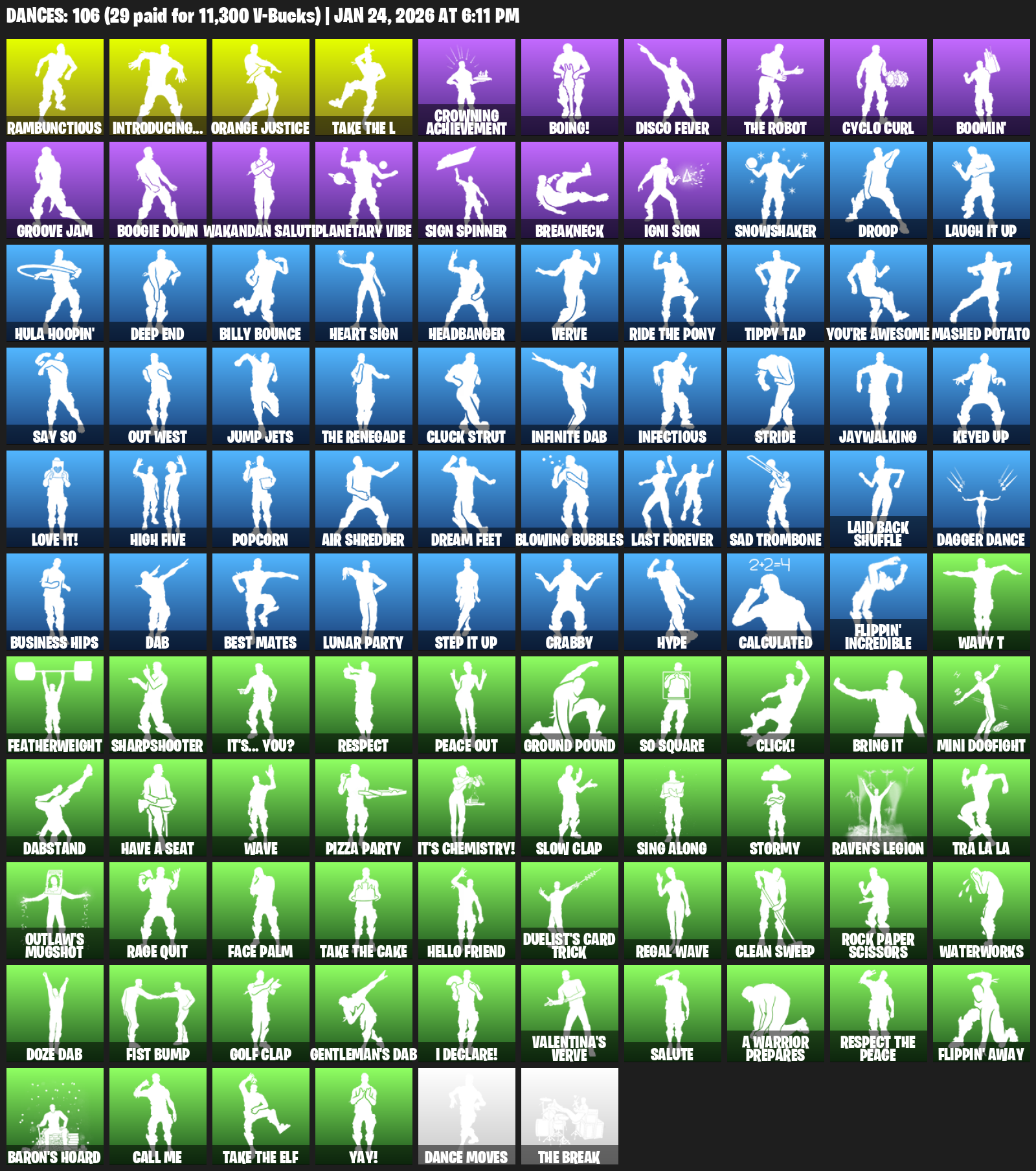 Introducing…, Rambunctious, Orange Justice, Crowning Achievement, Boing!, Disco Fever, Cyclo Curl, Boomin’, Groove Jam, Boogie Down, Wakandan Salute, Planetary Vibe, Sign Spinner, Breakneck, Snowshaker, Droop, Laugh It Up