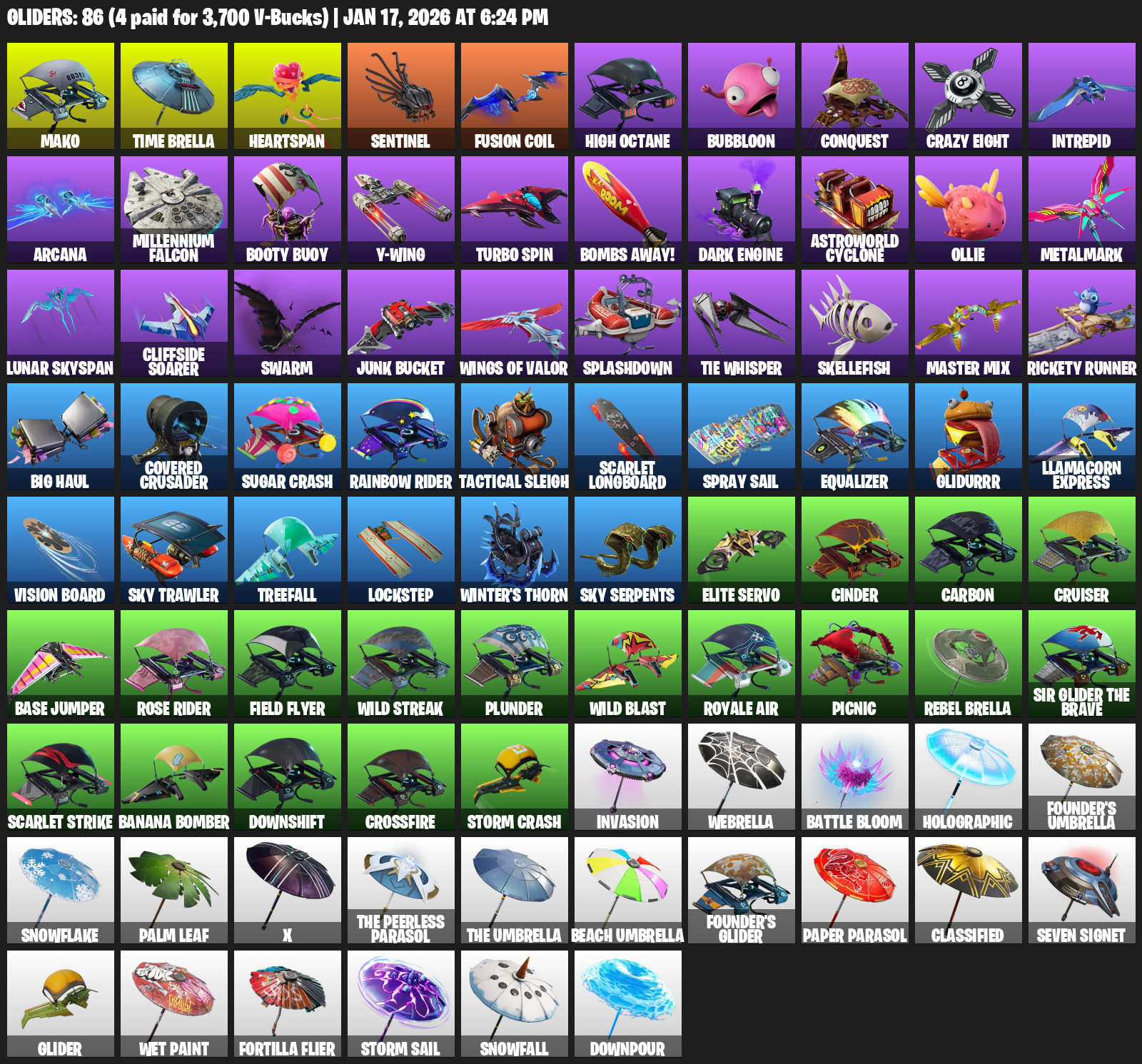 Mako, Time Brella, Heartspan, Sentinel, High Octane, Bubbloon, Conquest, Crazy Eight, Intrepid, Arcana, Millennium Falcon, Booty Buoy, Y-Wing, Turbo Spin, Bombs Away!, Astroworld Cyclone, Ollie, Metalmark
