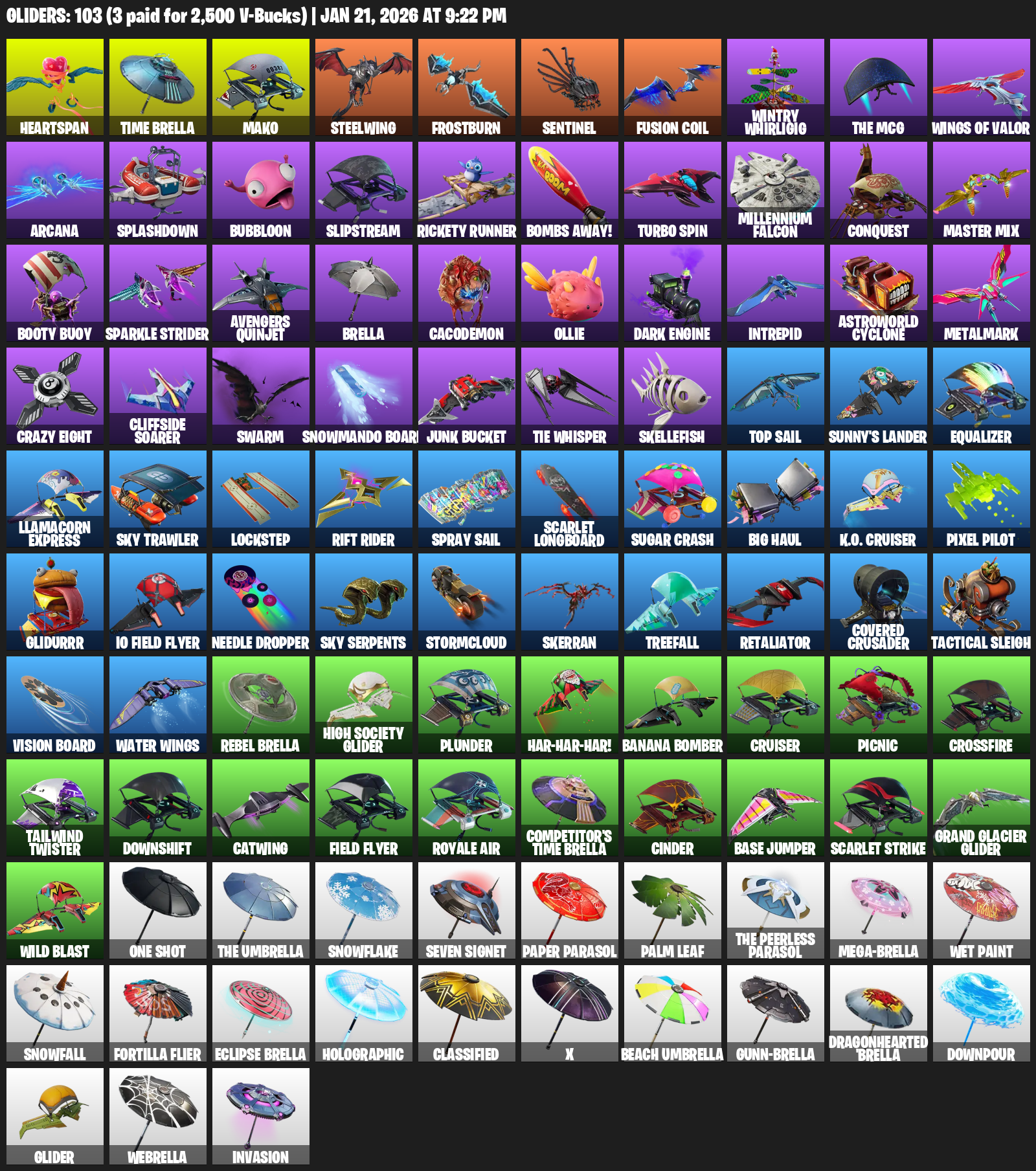 Mako, Heartspan, Time Brella, Steelwing, Frostburn, Wintry Whirligig, Arcana, Splashdown, Bubbloon, Slipstream, Rickety Runner, Bombs Away!, Turbo Spin, Millennium Falcon, Conquest