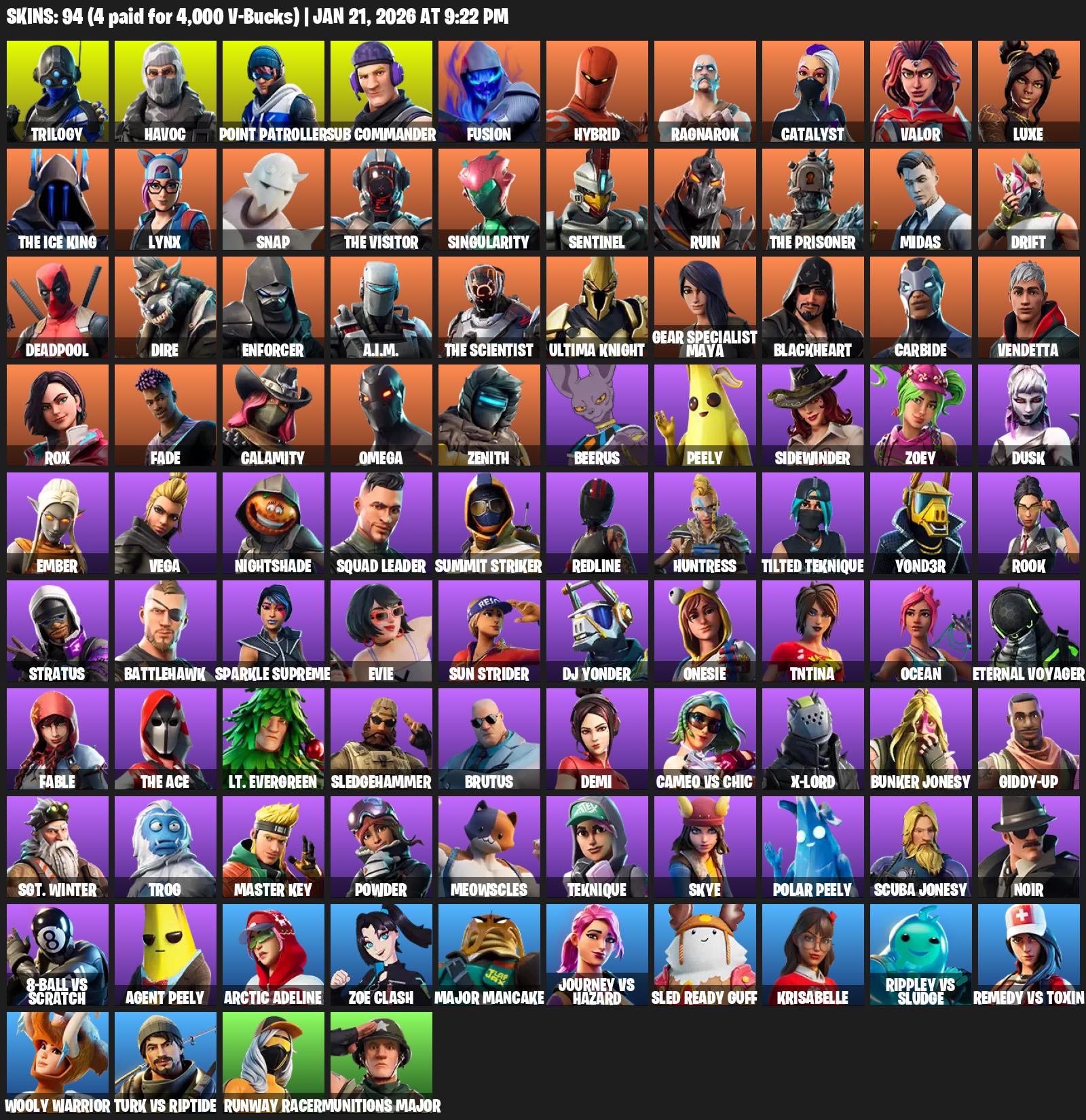 Point Patroller, Gear Specialist Maya, Omega, Trilogy, Havoc, Sub Commander, Fusion, Hybrid, Ragnarok, Catalyst, Valor, Luxe, The Ice King, Lynx, Snap, Singularity, Sentinel, Ruin