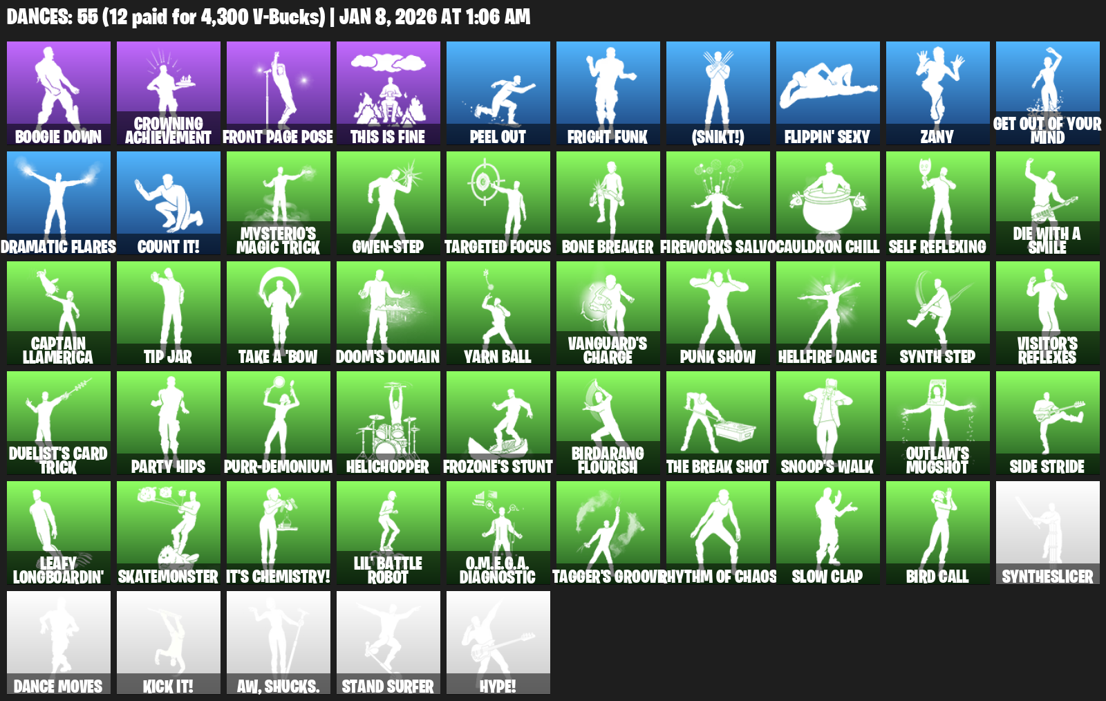Boogie Down, Crowning Achievement, Front Page Pose, This is Fine, Peel Out, Fright Funk, (Snikt!), Flippin’ Sexy, Zany, Dramatic Flares, Count It!, Mysterio’s Magic Trick, Gwen-Step, Targeted Focus, Bone Breaker, Fireworks Salvo, Cauldron Chill, Self Reflexing
