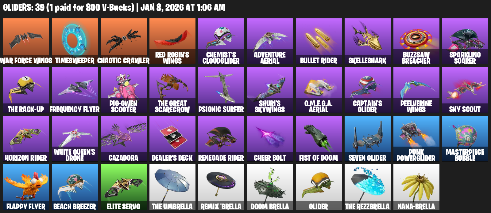 War Force Wings, Timesweeper, Chaotic Crawler, Chemist’s Cloudglider, Adventure Aerial, Skelleshark, Buzzsaw Breacher, Sparkling Soarer, Frequency Flyer, Shuri’s Skywings, Captain’s Glider, Sky Scout