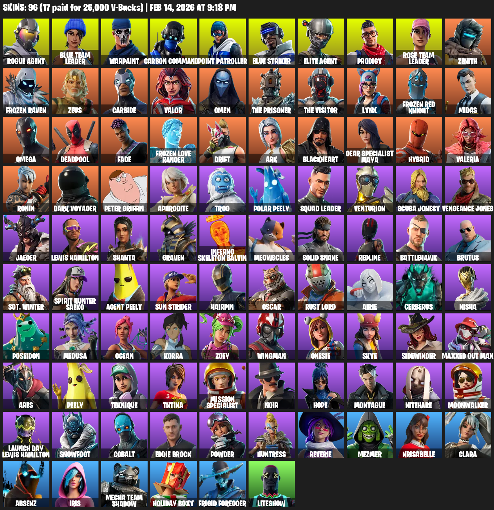 [PC/XBOX] | 96 skins | Take The L | OG STW | Elite Agent | Omega | Rogue Agent | Blue Team Leader | Warpaint | Carbon Commando | #UIB1911