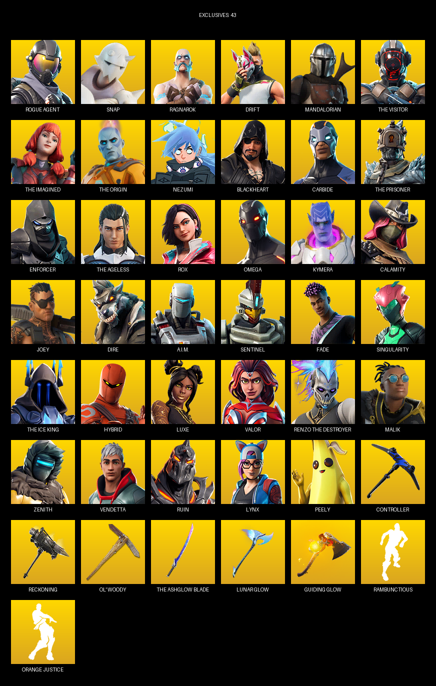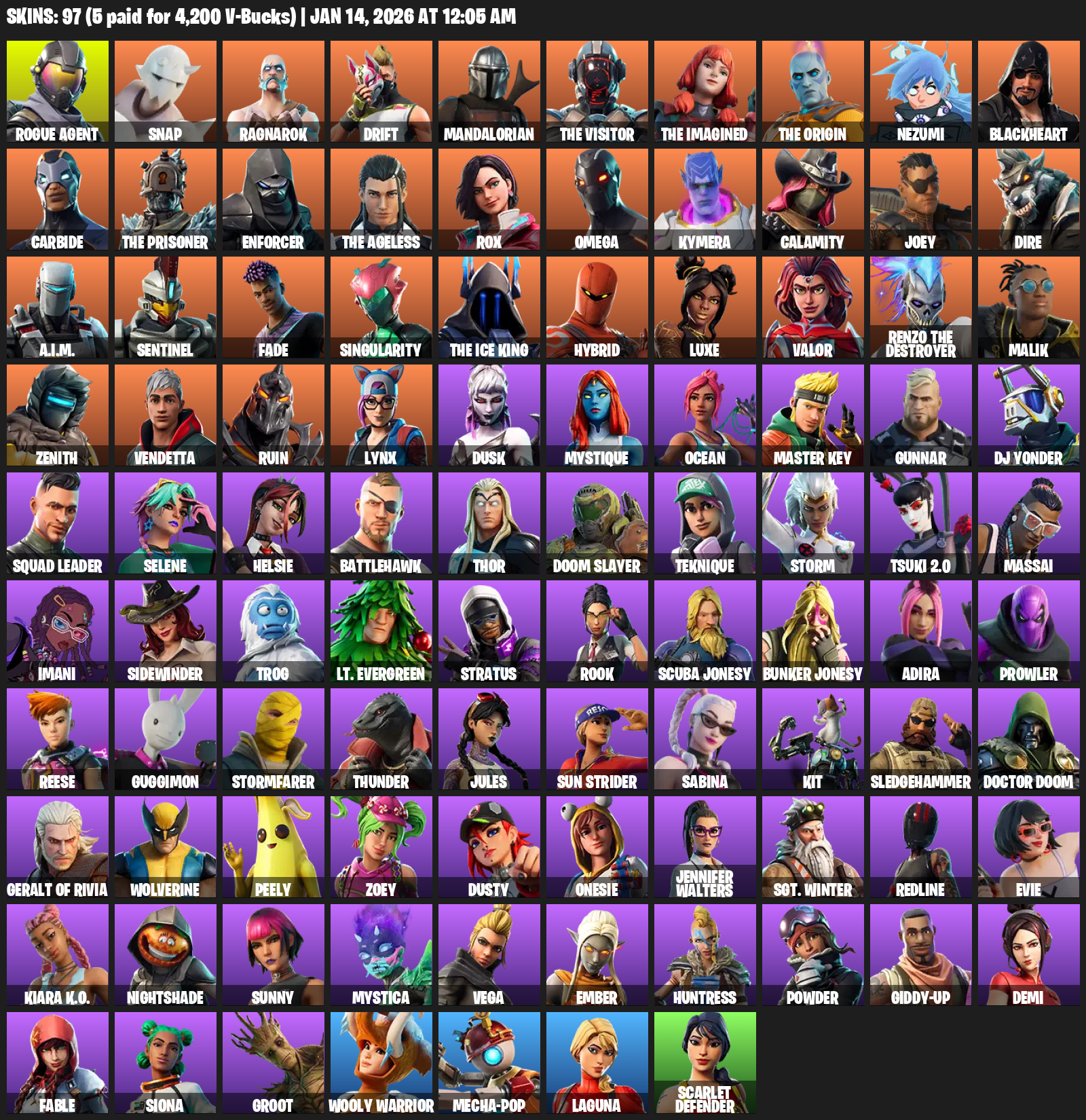 Omega, Rogue Agent, Snap, Ragnarok, Drift, Mandalorian, The Visitor, Nezumi, Blackheart, Carbide, Enforcer, Rox, Kymera, Calamity, Joey, Dire