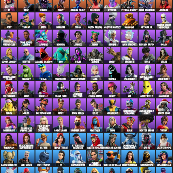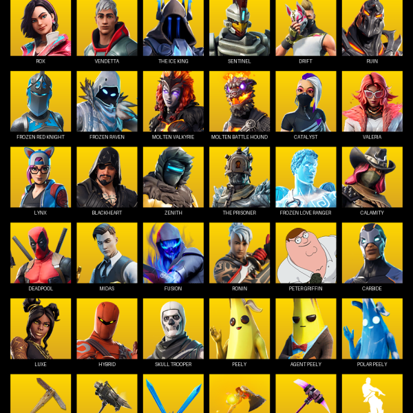 [PC/PSN] | 126 skins | 600 V-bucks | Leviathan Axe | Lara Croft | Luxe | Power Chord | Ragnarok | Rox | The Ice King | Fade | Dire | Hybrid | #XYA0873