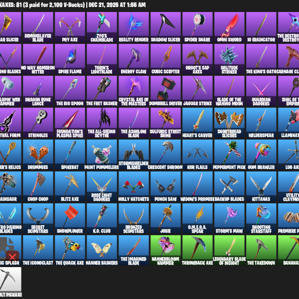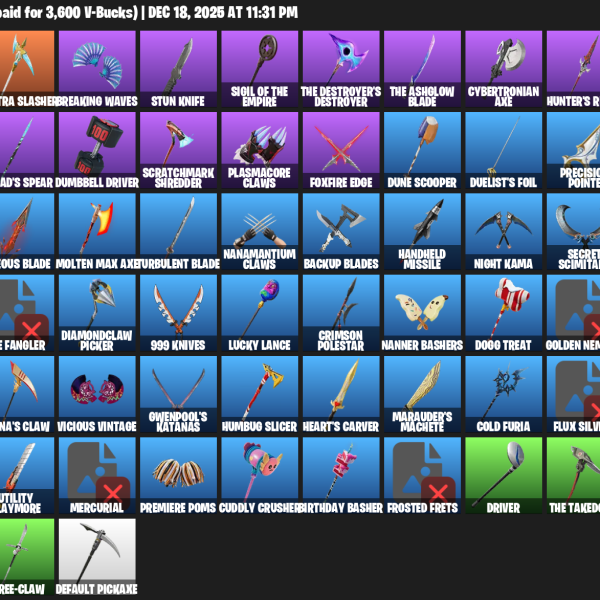 [PC/PSN/XBOX] | 52 skins | Reaper Axe | Fade | Fusion | Rox | Blackheart | Singularity | Catalyst | Raven | Sorana | Deadpool | #FZA1616