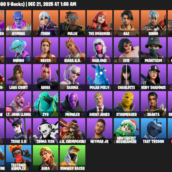 [PC/PSN/XBOX] | 55 skins | 1000 V-bucks | Lara Croft | Darth Vader | The Cube Queen | Kymera | Torin | Malik | The Imagined | Raz | Ronin | #GFG6111