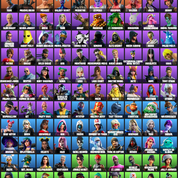 [PC/PSN] | 126 skins | 600 V-bucks | Leviathan Axe | Lara Croft | Luxe | Power Chord | Ragnarok | Rox | The Ice King | Fade | Dire | Hybrid | #XYA0873