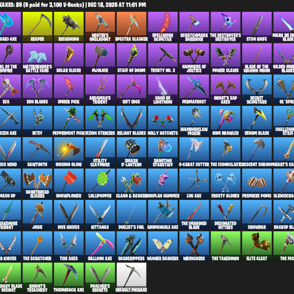 [PC/PSN/XBOX] | 79 skins | Leviathan Axe | OG STW | Rose Team Leader | Warpaint | Prodigy | Eternal Knight | Ragnarok | Deadpool | Calamity | #BZN9953